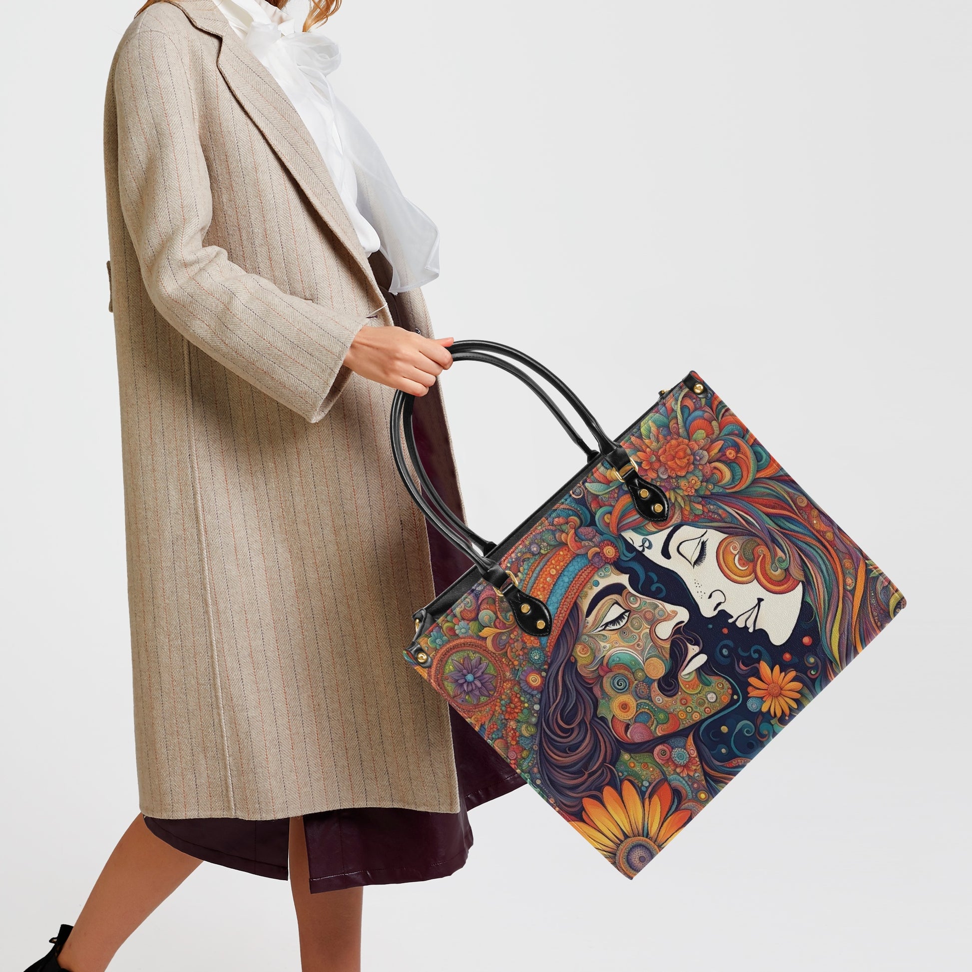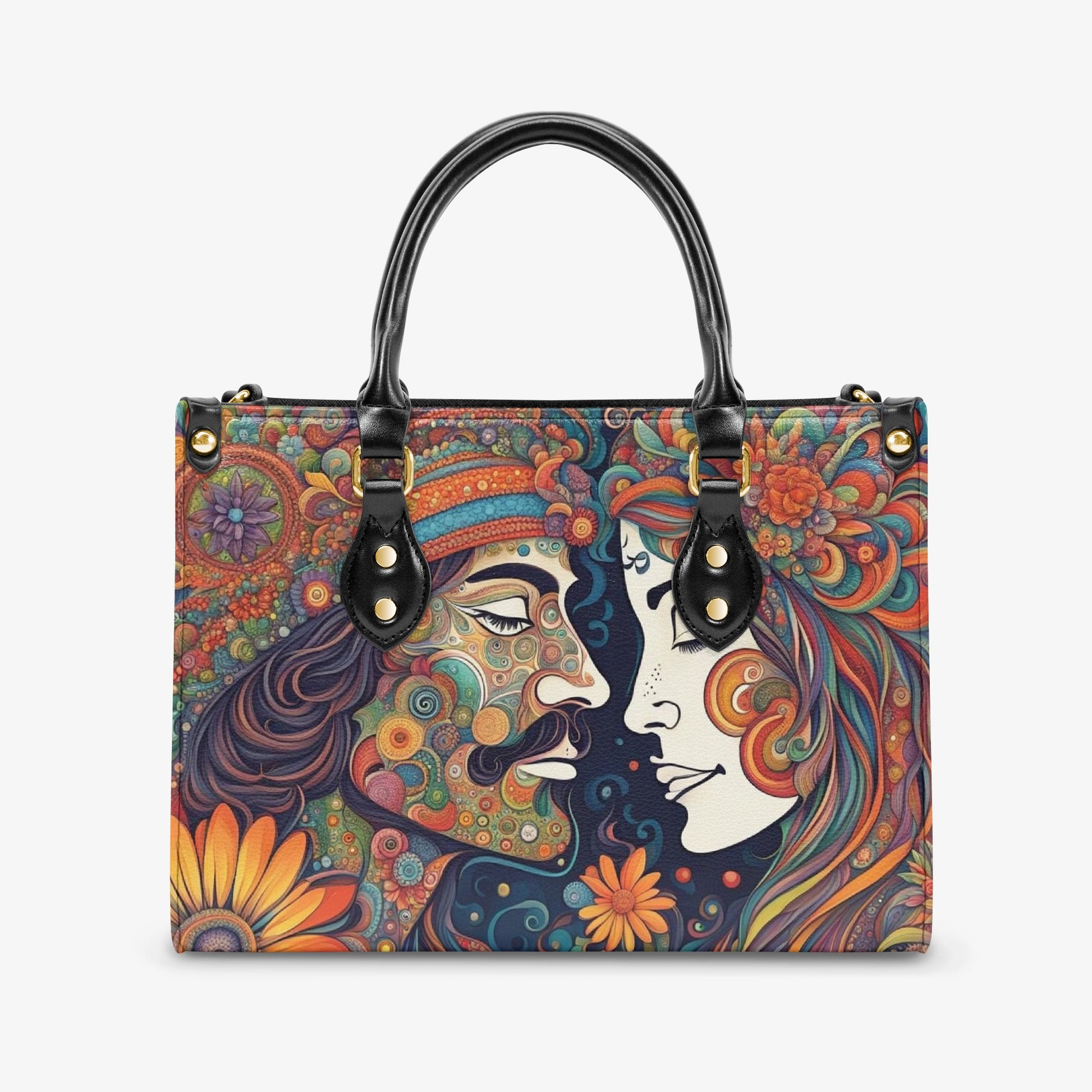 Add vintage charm to your wardrobe with this Flower Power Art Hippie Couple Crossbody Bag, designed in true boho spirit. Featuring a colorful artistic image of a hippie couple surrounded by vibrant flowers, this bag is a celebration of love, freedom and peace. Perfect for those who embrace the bohemian look, it is both stylish and functional with its spacious interior and adjustable strap. Carry your essentials in style while staying true to your free-spirited nature!