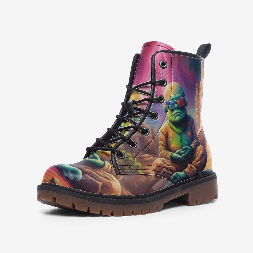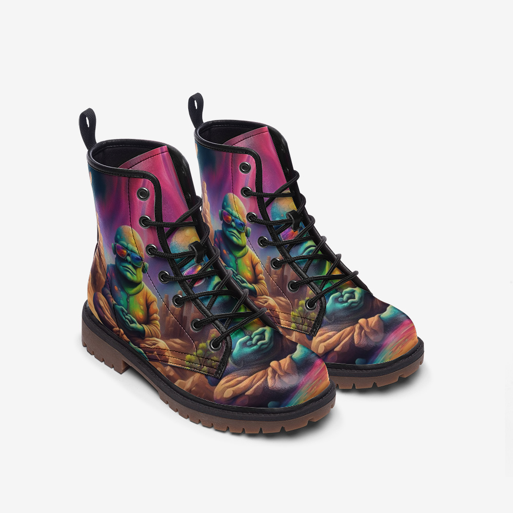 Hippie Art Zone - Alien Meditation Casual Leather Lightweight Boots For Hippies