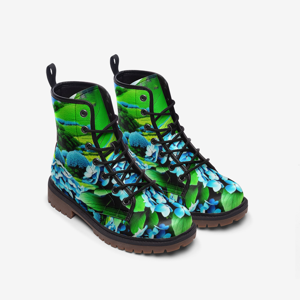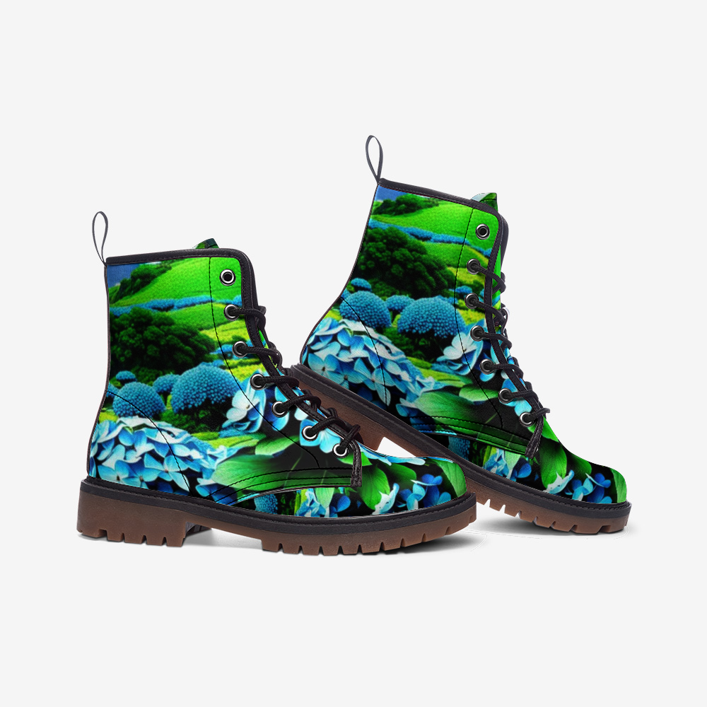 Discover the essence of natural beauty with the beautiful Hydrangea Leather Lightweight Boots from Emerald Blossoms. These boots feature a beautiful hydrangea design that exudes elegance and charm. Perfect for those who appreciate floral prints and desire comfort without compromising style.