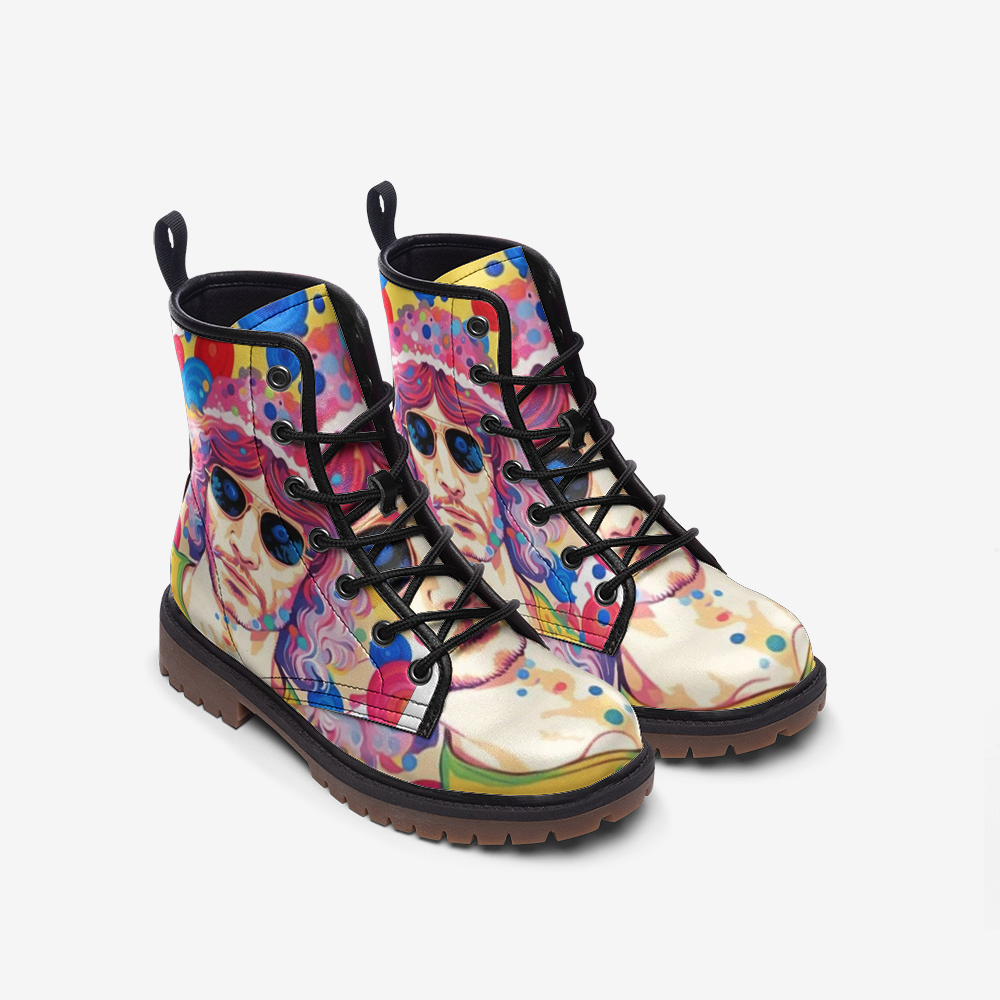 Step into timeless bohemian style with the Emerald Blossoms Bohemian Man Vintage Pink Hairstyle Lightweight Leather Casual Boots. These unique boots feature a retro-inspired pink hairstyle design that celebrates the carefree nature of the bohemian lifestyle. Crafted from lightweight, durable leather, they are both comfortable and long-lasting. Perfect for those who embrace classic style and want to make a bold, stylish statement, these boots are ideal for adding a touch of personality to any casual outfit.