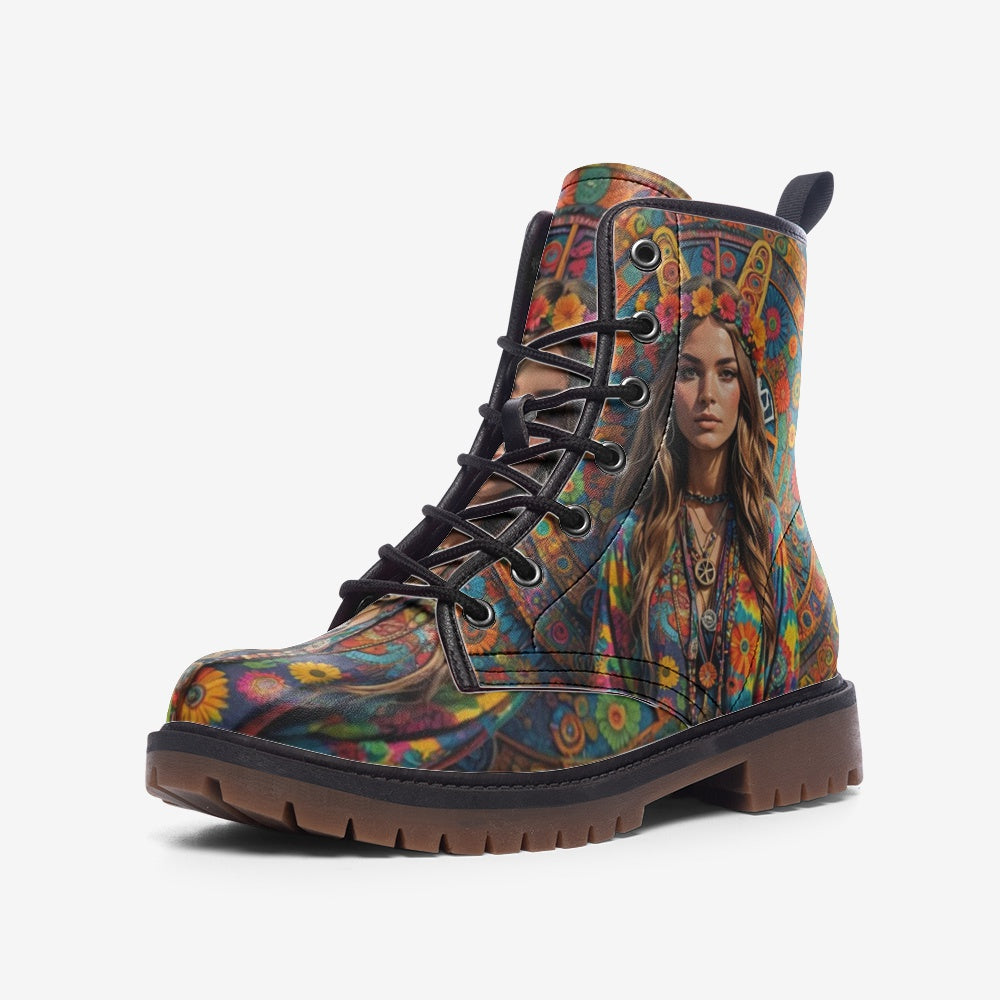 Hippie Art Zone - Bohemian Style Women Casual Leather Lightweight Boots For Hippies