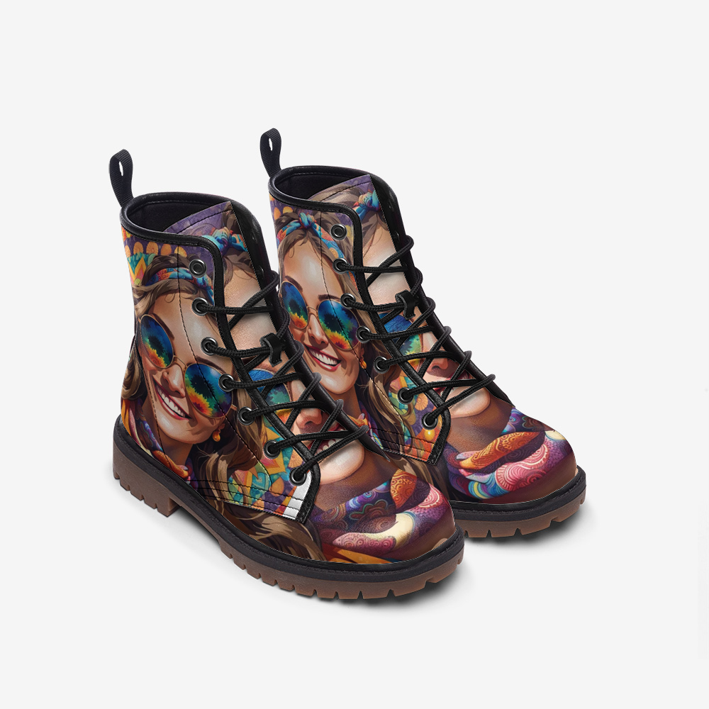Hippie Art Zone - Bright Smile For A New Day, Smiling Face Casual Leather Lightweight Boots For Hippies