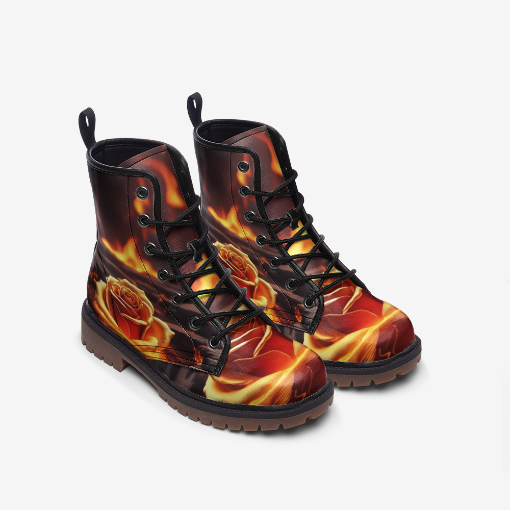 Hippie Art Zone - Burning Rose Flower on Leather Lightweight Boots for Hippies
