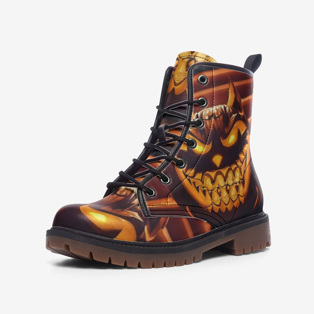 Hippie Art Zone - Cat-O-Lantern Leather Boots For Halloween
