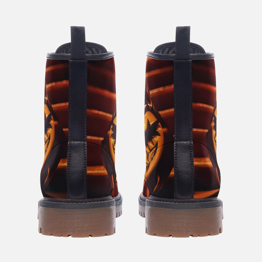 These leather boots feature a spooky Cat-O-Lantern design, perfect for Halloween lovers. Comfortable and durable, they are ideal for everyday wear or to add a festive touch to your Halloween costume. Get in the spirit of the season with these unique and fun boots!