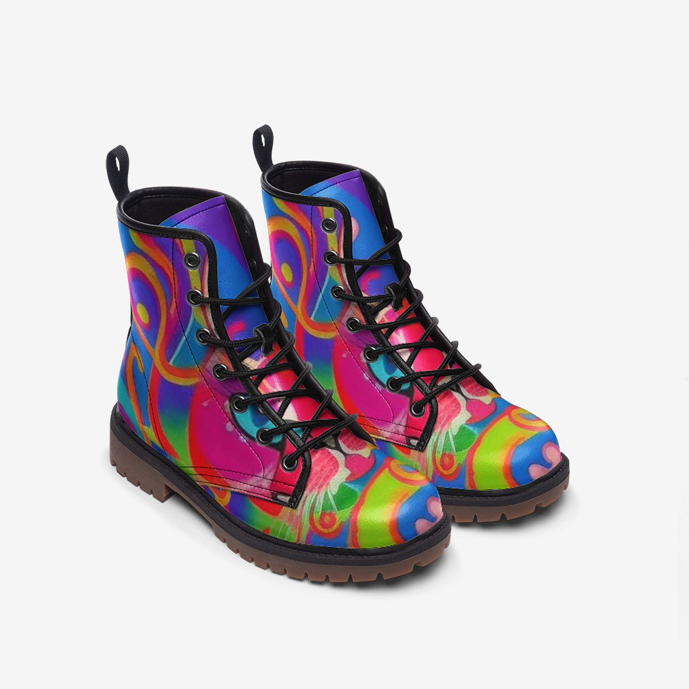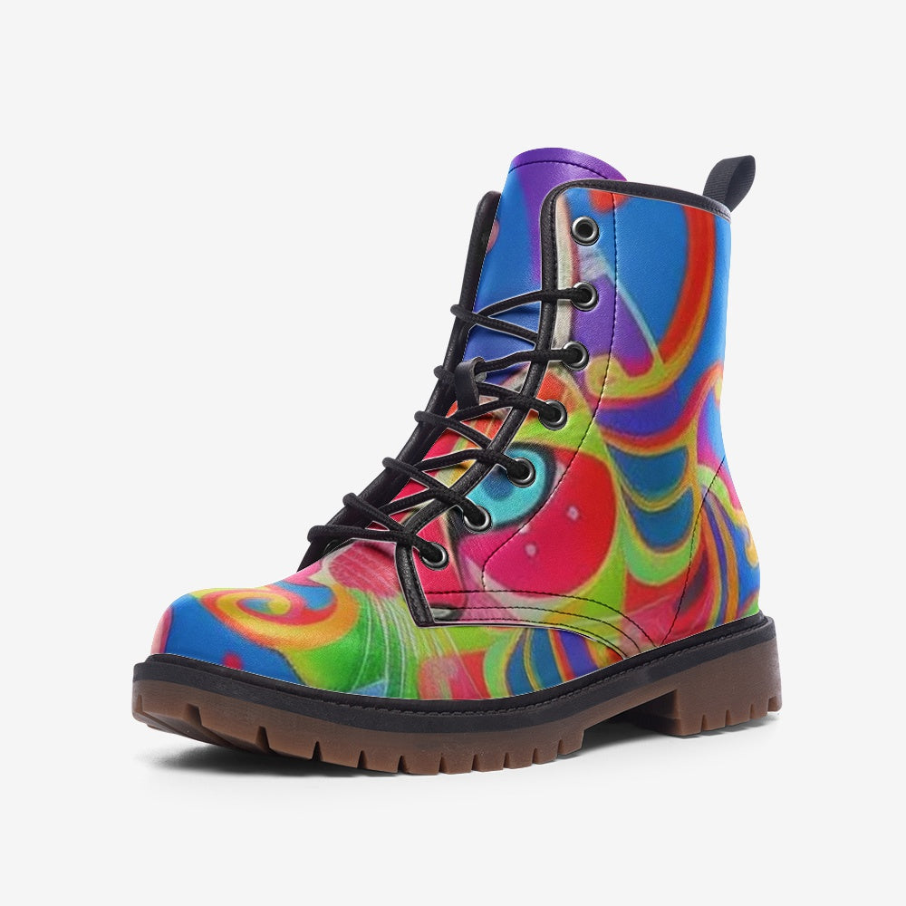 Colorful Abstract Leather Lightweight Boots For Hippies