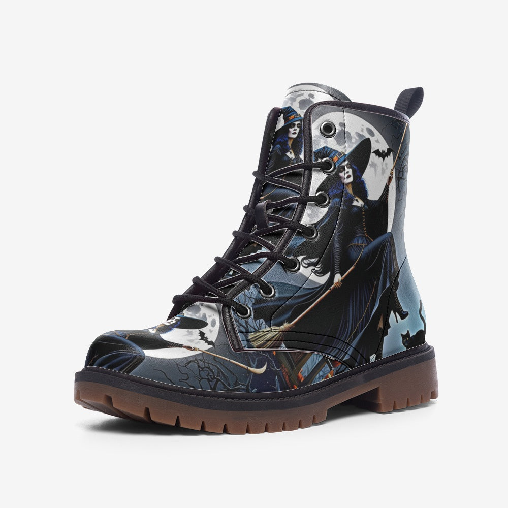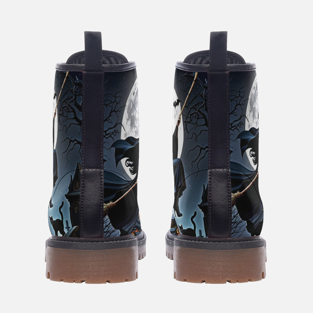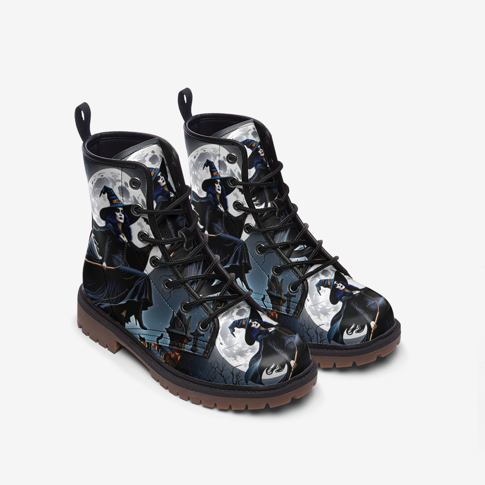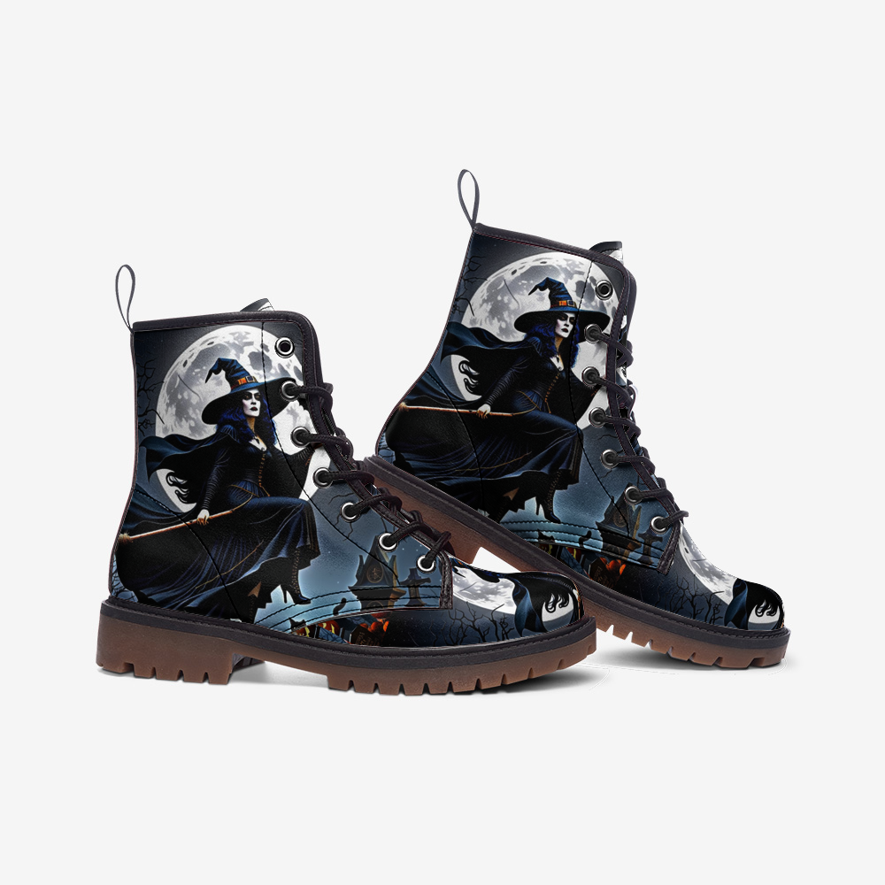 These leather boots feature a black witch design, perfect for Halloween enthusiasts. Comfortable and durable, they are perfect for everyday wear or adding a touch of mystery to your Halloween costume. Channel your inner witch and step out in style this spooky season!