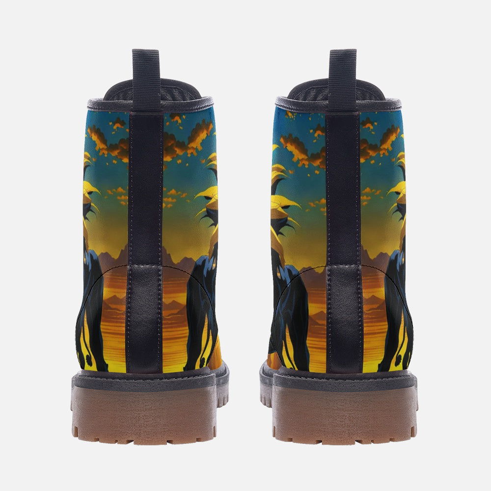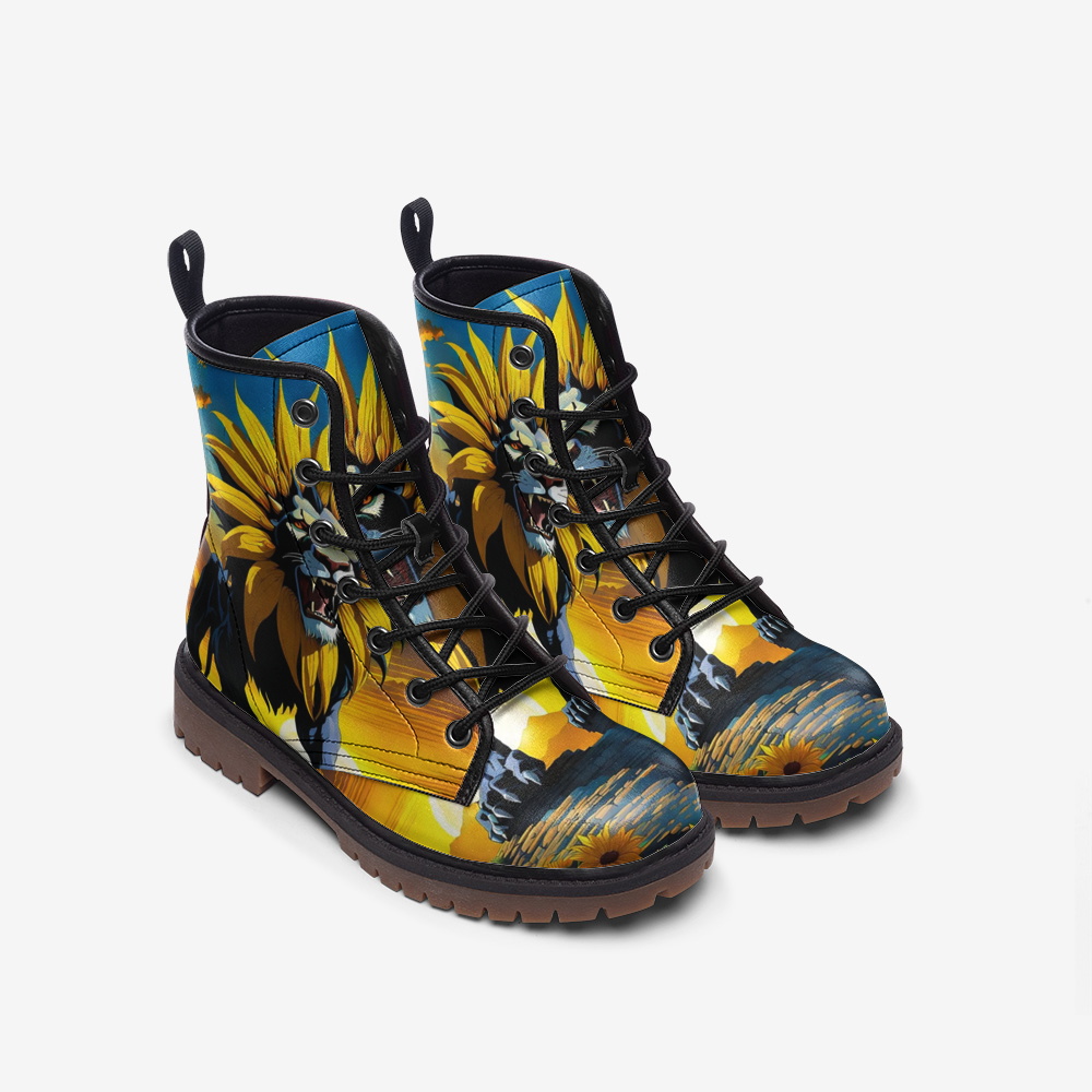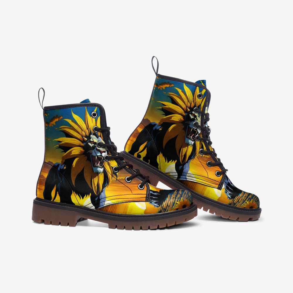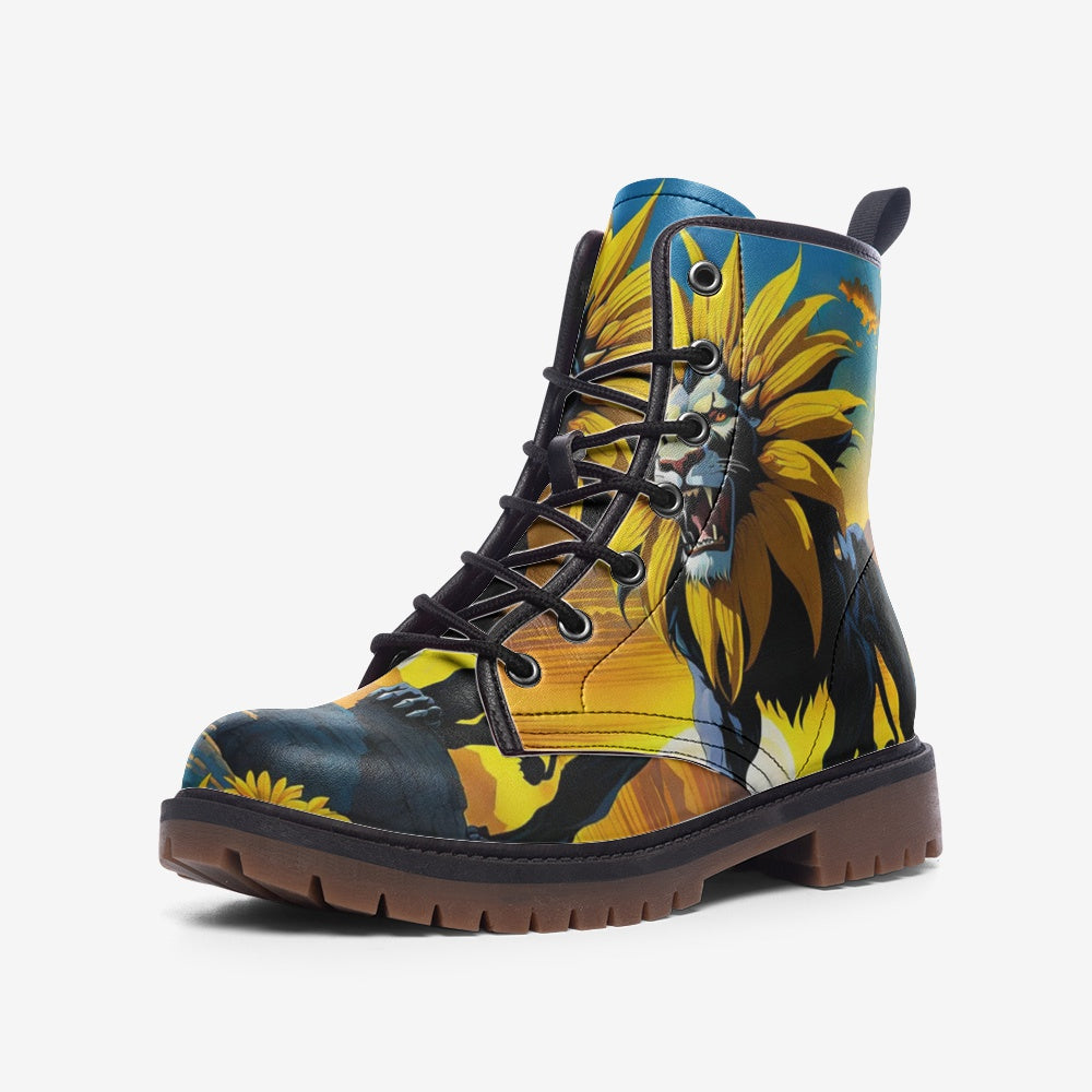 Dreamy Lion with Sunflower on Leather Lightweight Boots for Hippies
