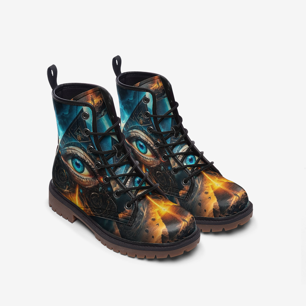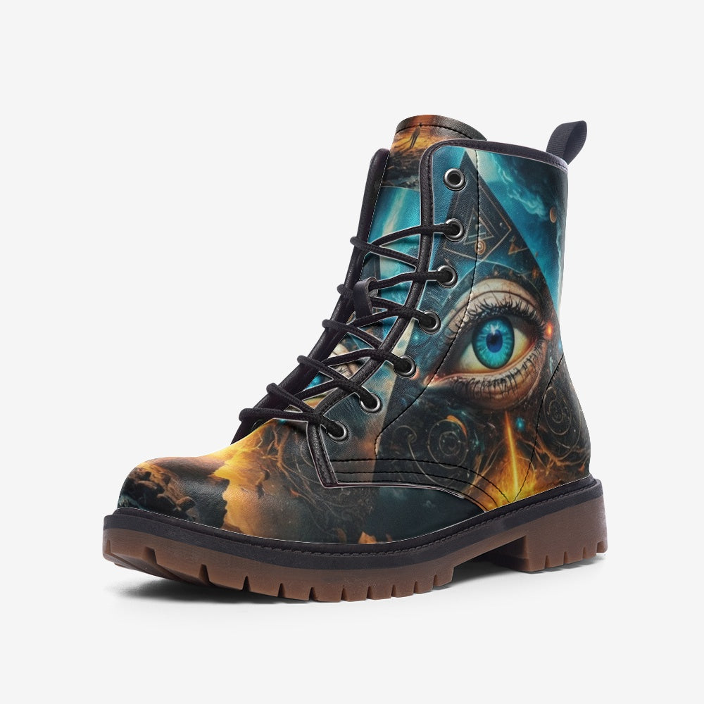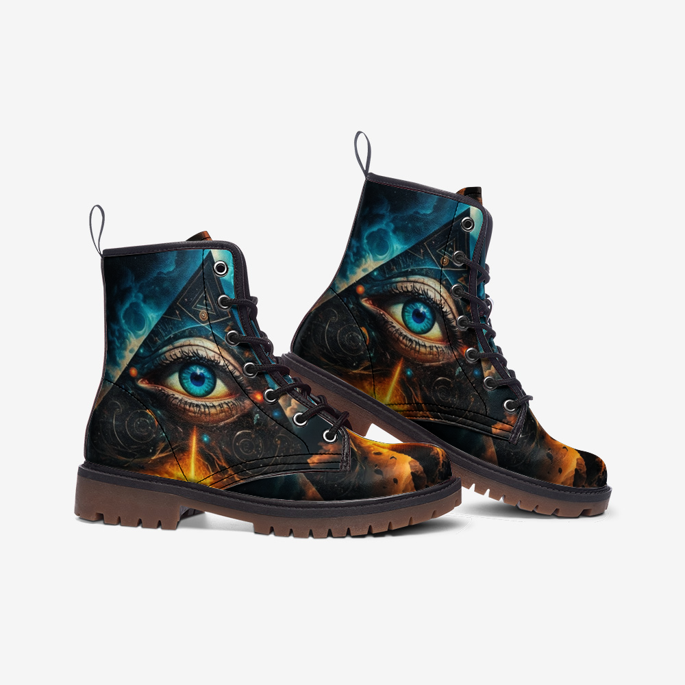 Hippie Art Zone - Eye of the Pyramid Vegan Leather Boots, Mystical Hippie Style