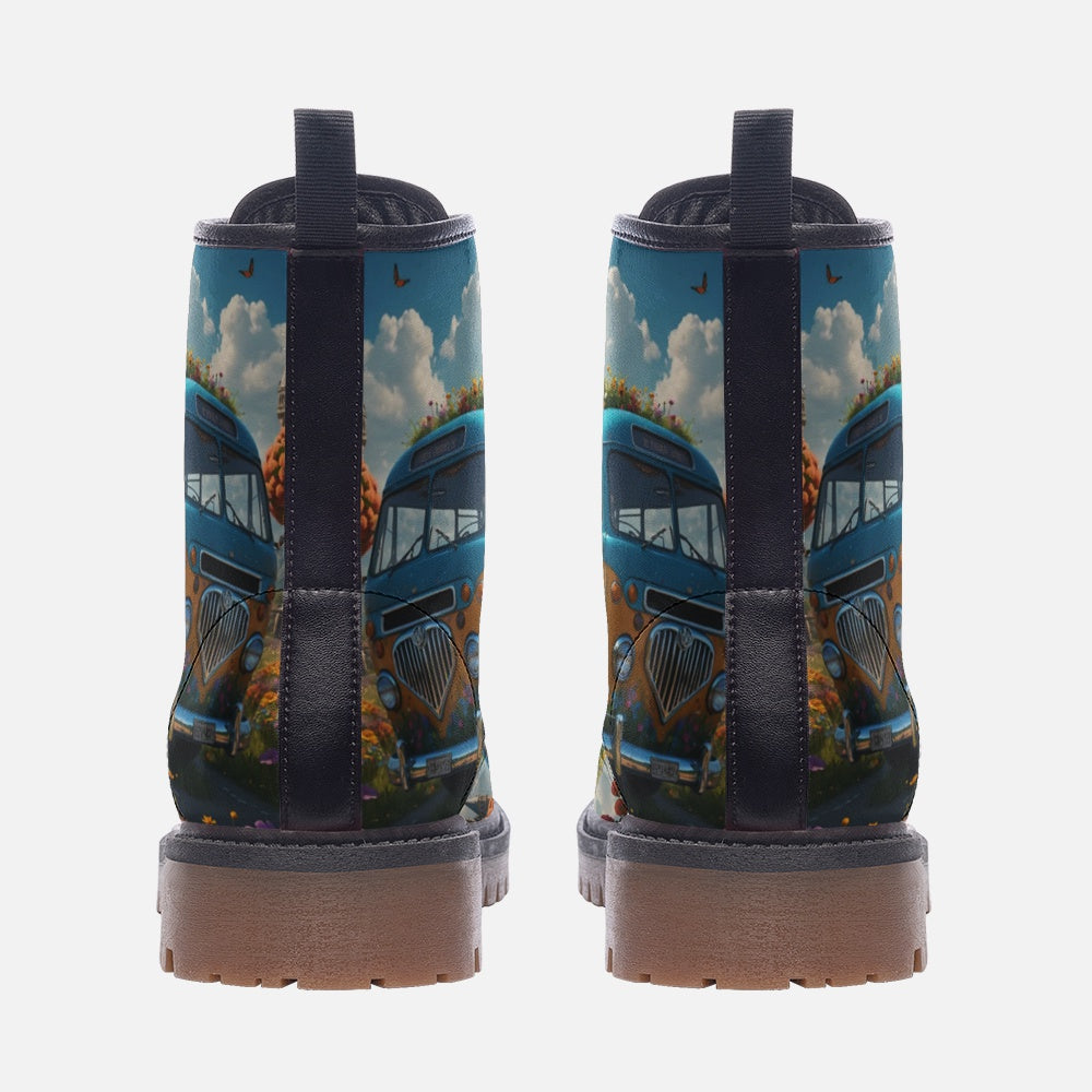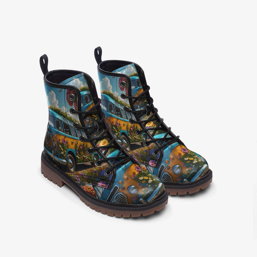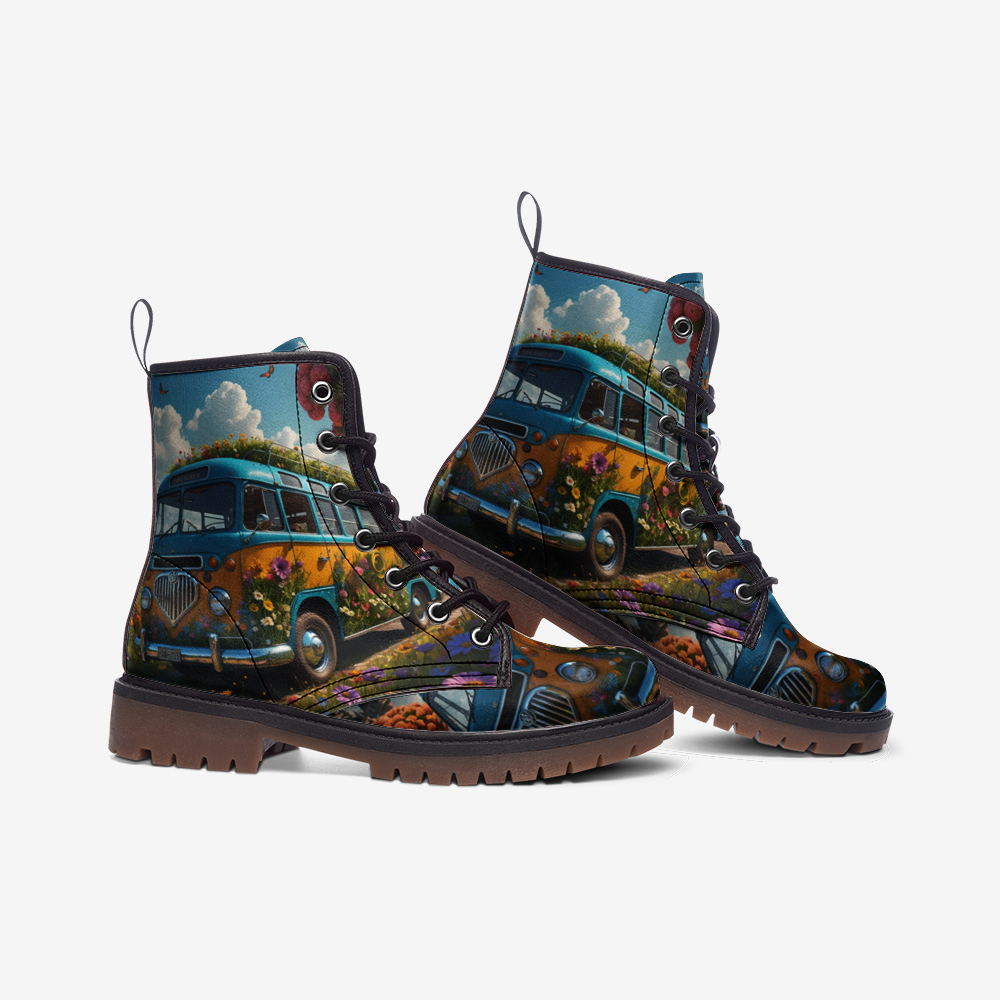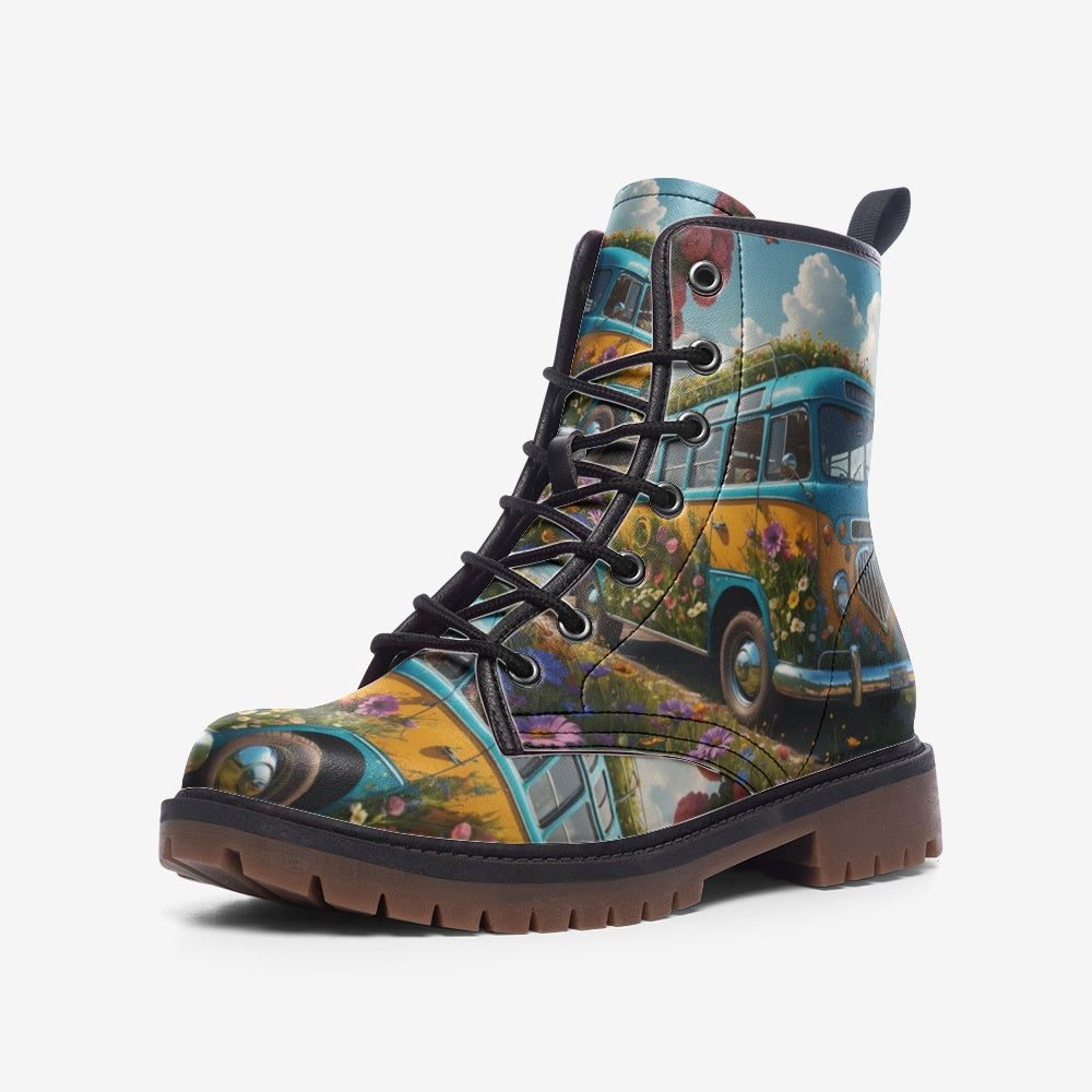 Hippie Art Zone - Floral Kombi Van Leather Lightweight Boots for Hippies