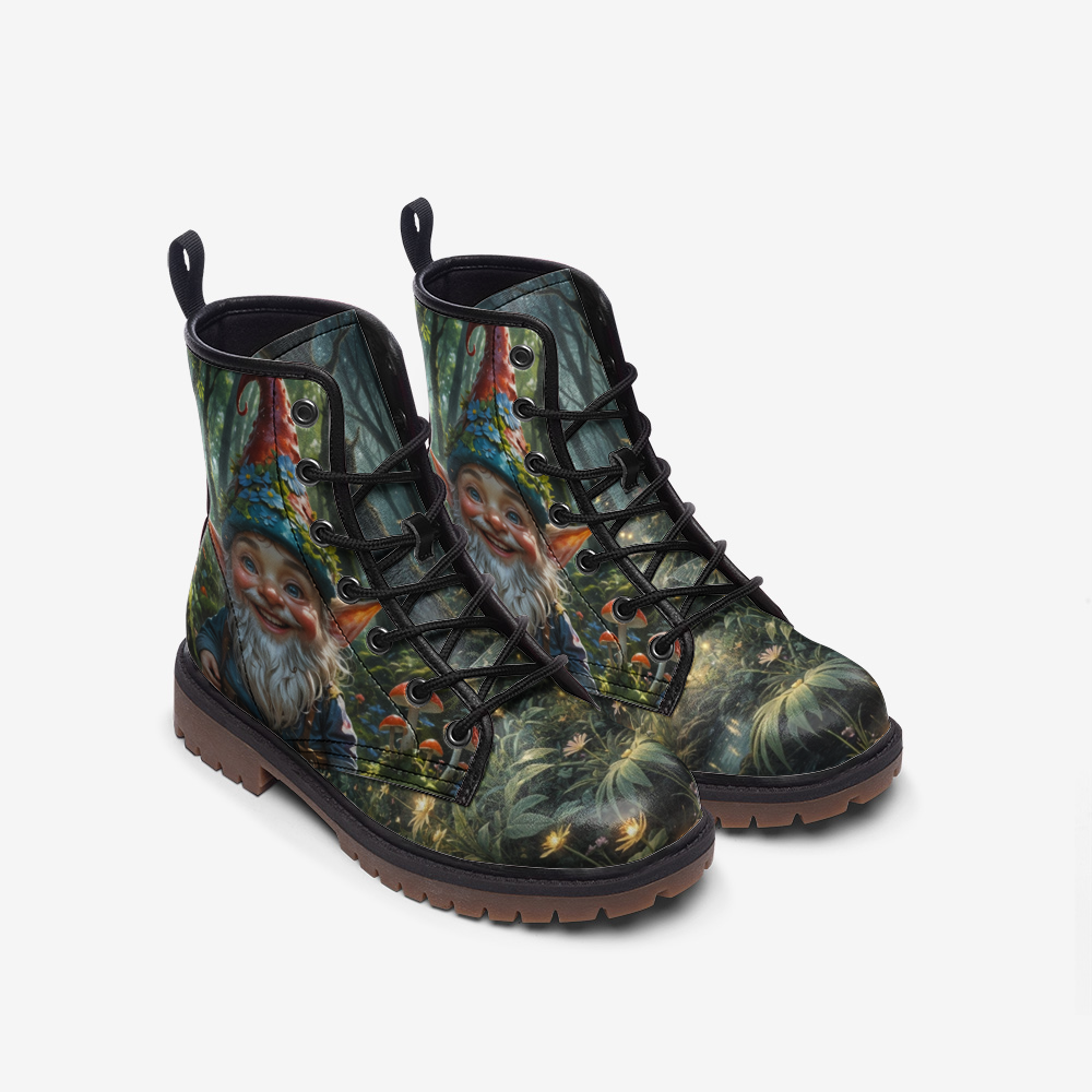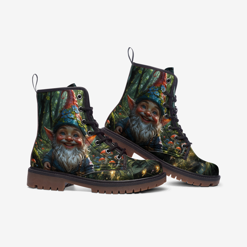Step into a world of wonder with our Forest Gnome vegan leather boots. Featuring a charming design of a whimsical gnome nestled in a lush forest, these boots bring a touch of fairytale charm to your wardrobe. Crafted from eco-friendly vegan leather, they combine sustainability with comfort. Perfect for free-spirited individuals and nature lovers, these boots will add a touch of magic to every adventure.