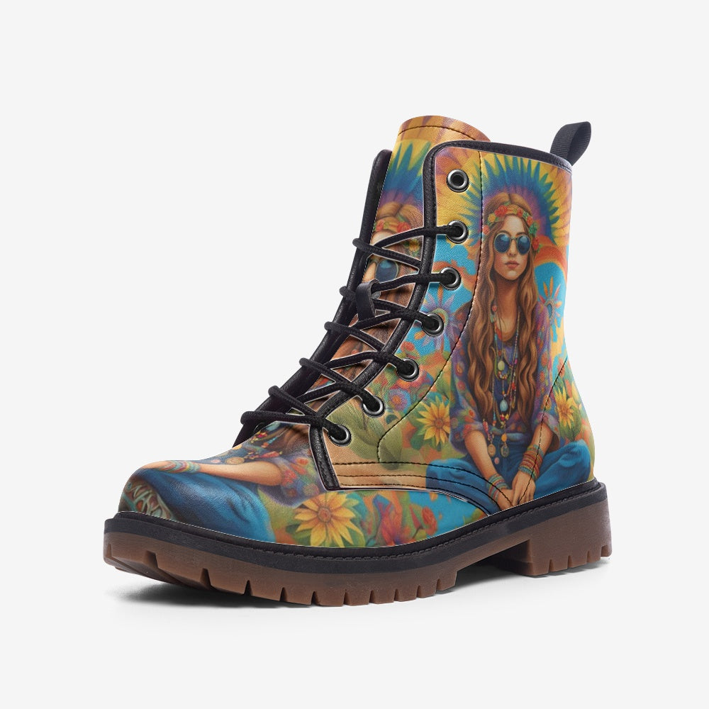 Hippie Art Zone - Girl With Rainbow Behind Casual Leather Lightweight Boots For Hippies