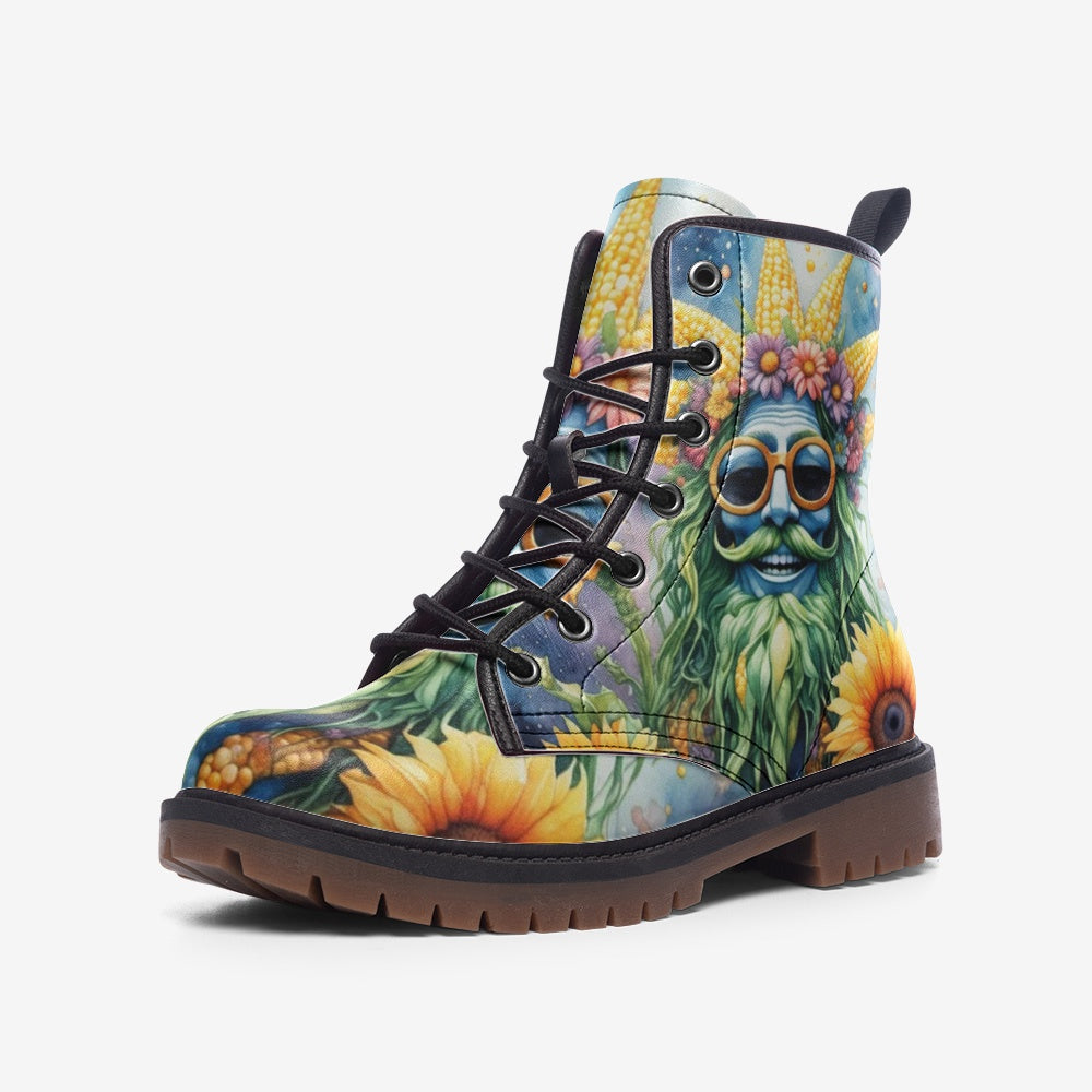 Step into comfort and style with the Green Beard Hippie Guy Casual Leather Lightweight Boots from Emerald Blossoms. Designed with a free spirit in mind, these boots combine rugged durability with a lightweight, comfortable fit. Perfect for those pursuing a bohemian style, their earthy tones and casual design make them ideal for both everyday adventures and relaxed gatherings. Celebrate your hippie spirit with shoes that are as comfortable as you are.