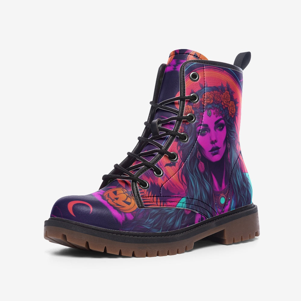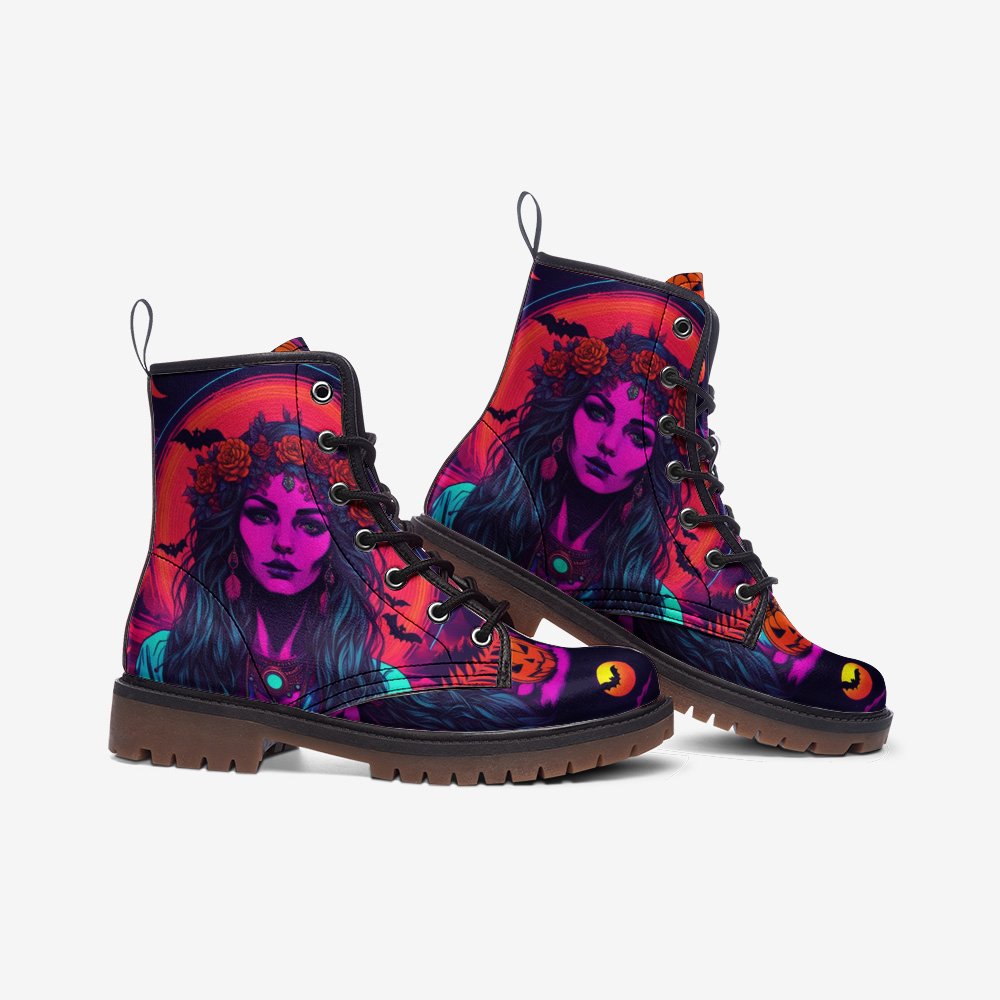 These leather boots feature a design inspired by gypsy, hippie and soul music, perfect for the free-spirited and festival-loving. Comfortable and durable, they are ideal for everyday wear or to complete your unique Halloween look. Show off your style wherever the beat takes you.