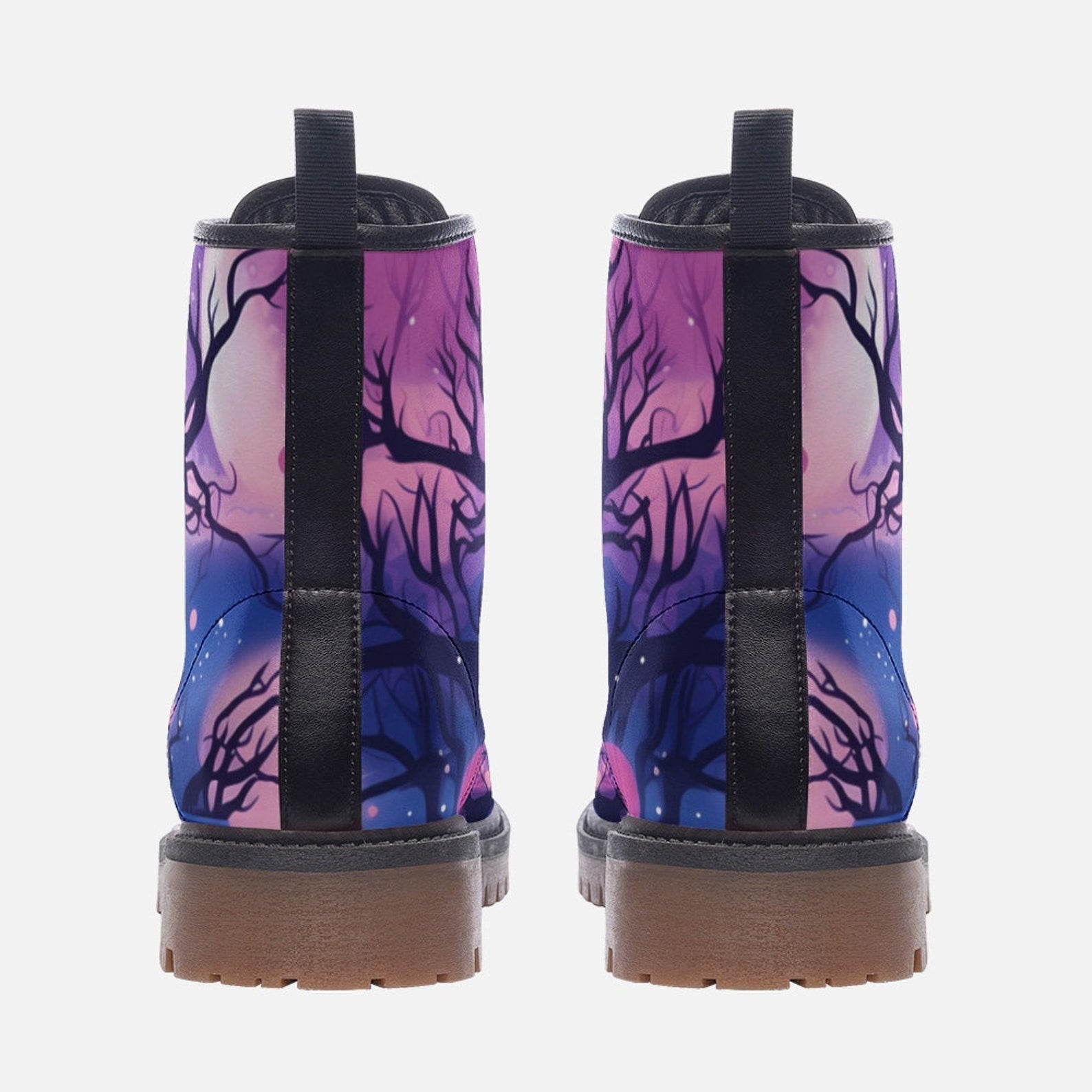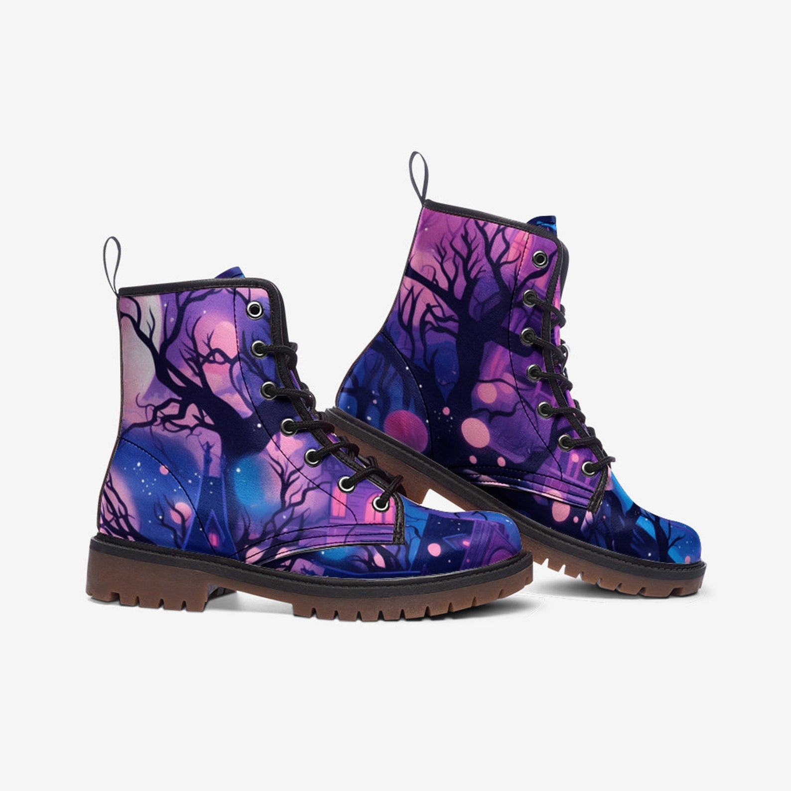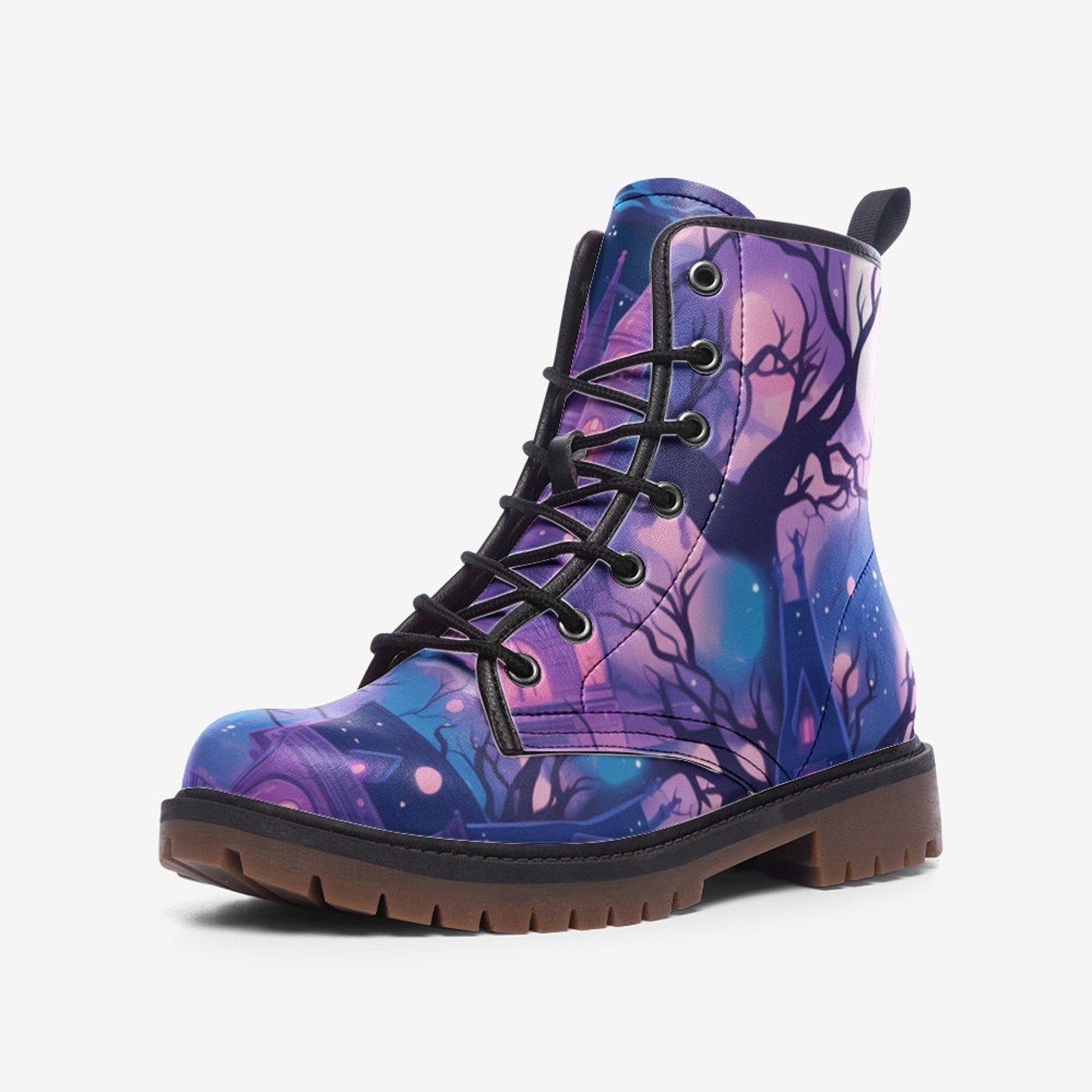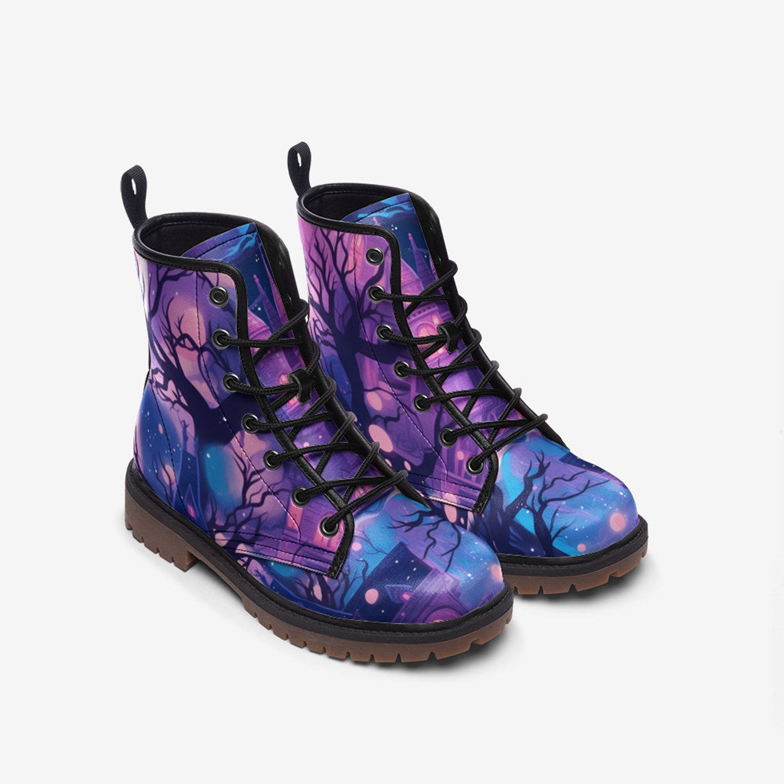 Hippie Art Zone - Haunted House Casual Leather Lightweight Boots | Combat Boots For Hippies