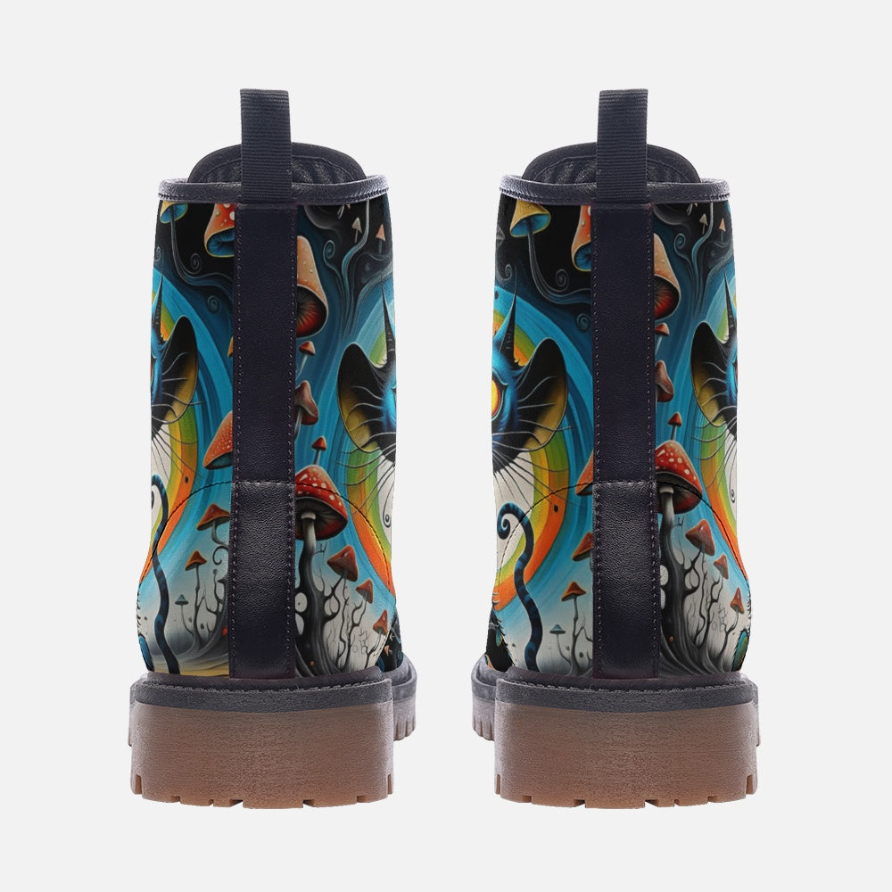 Hippie Art Zone - Hippie Cat & Psychedelic Mushroom Vegan Leather Boots