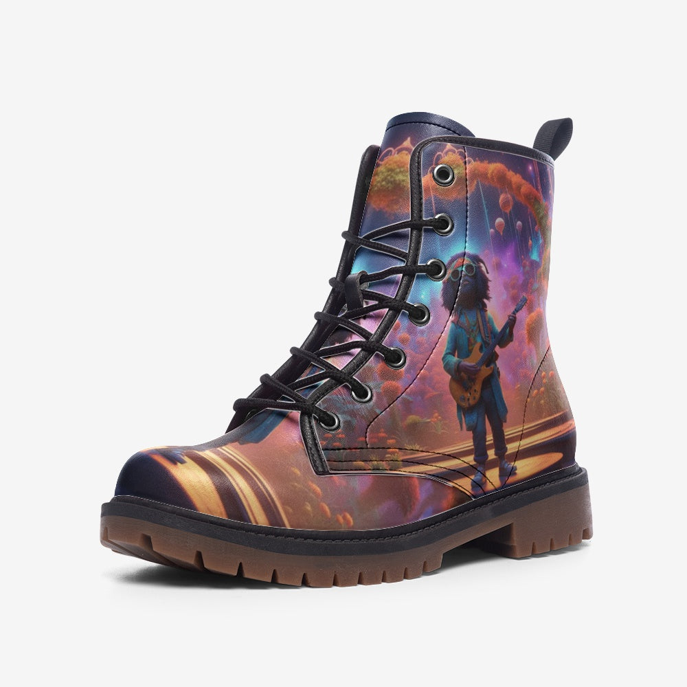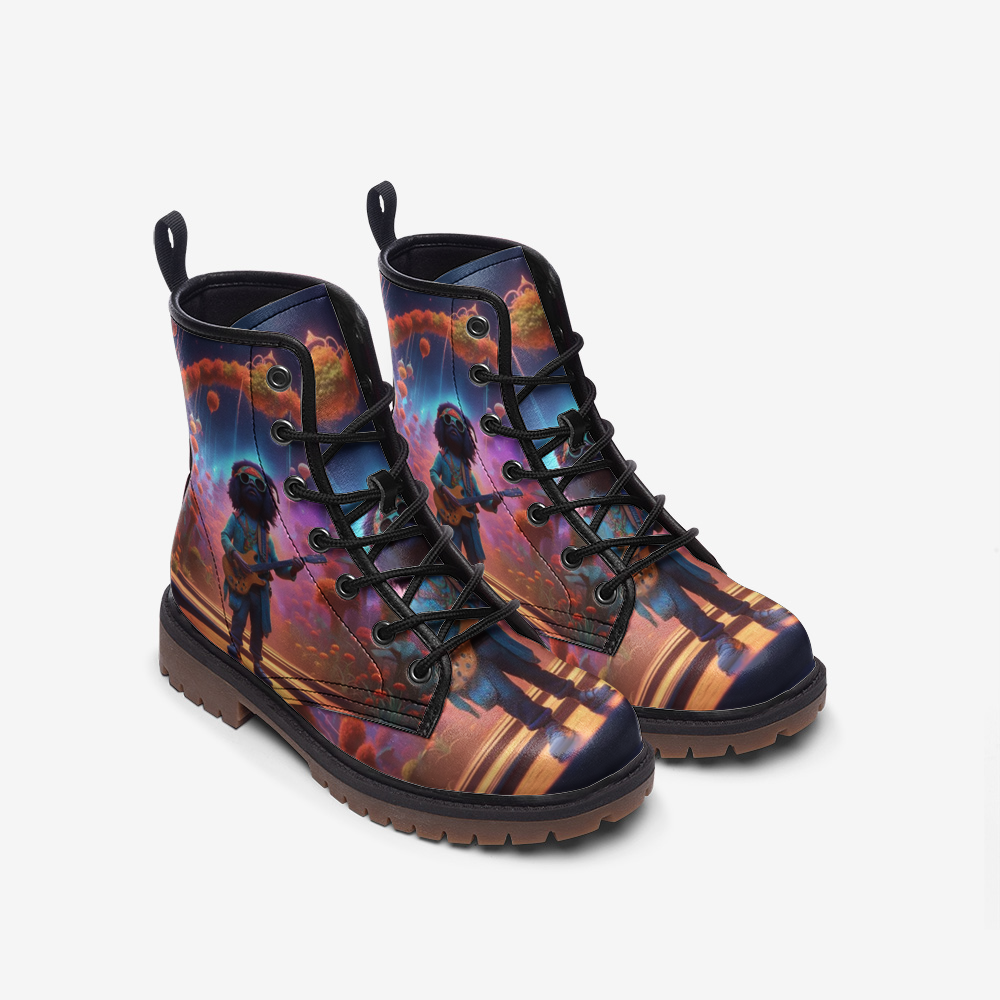 Hippie Art Zone - Hippie Guitarist Leather Lightweight Boots for Hippies
