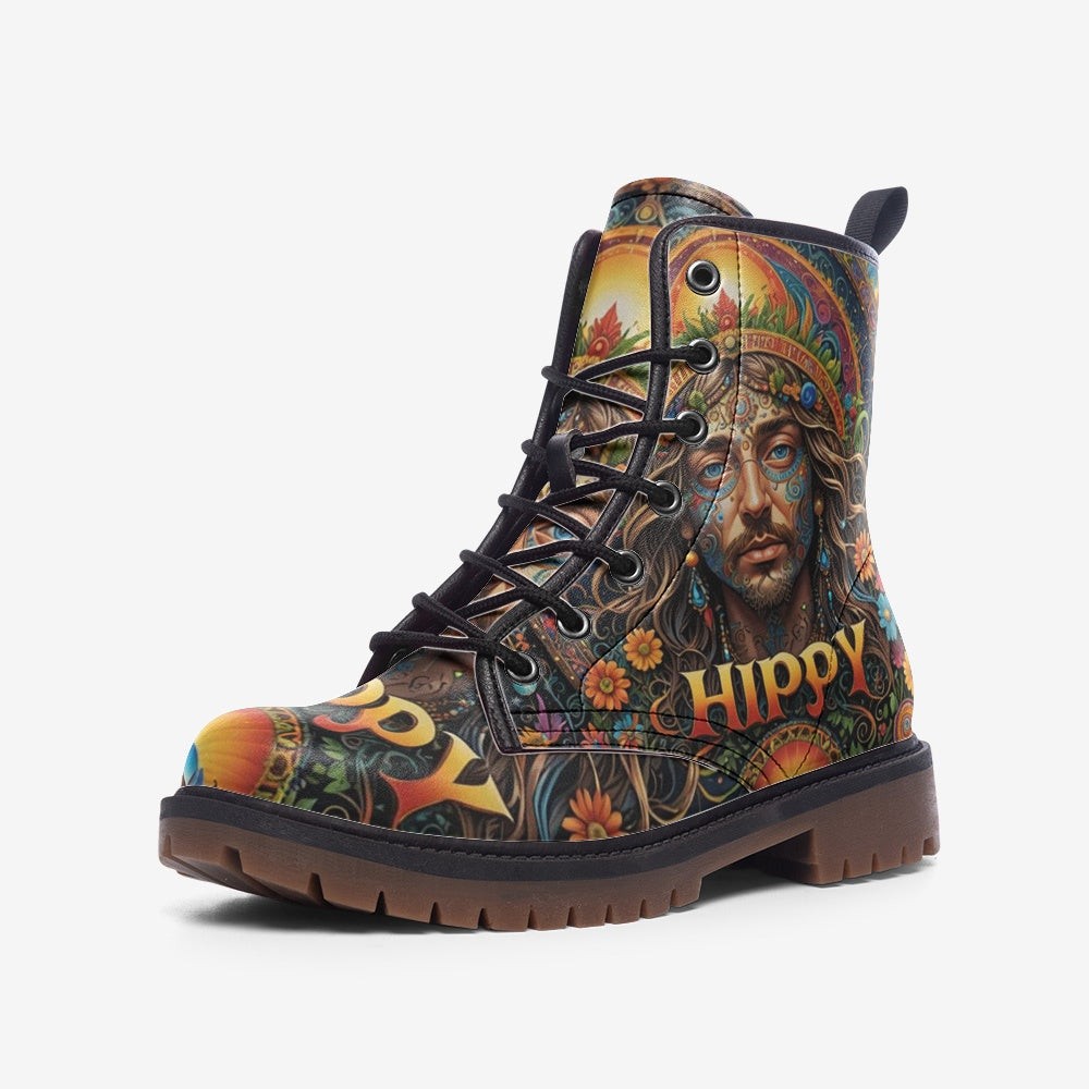 Hippie Art Zone - Hippie Guy on Leather Lightweight Boots for Hippies