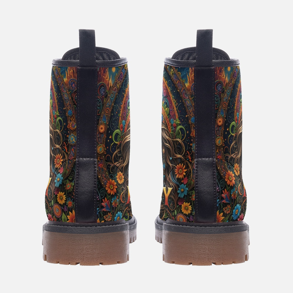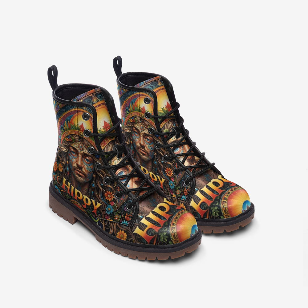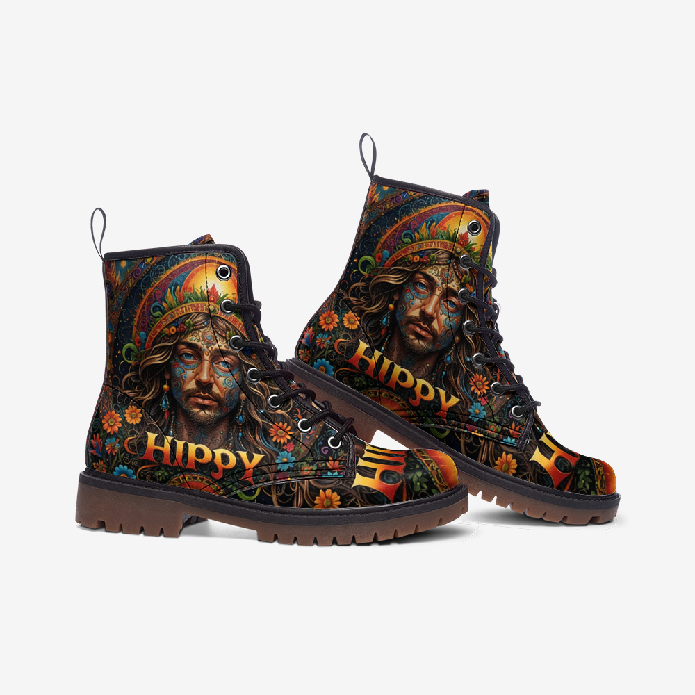 Capture the essence of free style with our "Hippie Guy" Lightweight Leather Boots. Designed to embody the carefree spirit of the 1960s, each shoe features unique artwork that celebrates peace, love and individuality. Crafted from premium leather, these boots combine durability with artistry, perfect for festivals and everyday adventures. Enter a world of creativity and self-expression with boots that embody the enduring charm of the hippie era.
