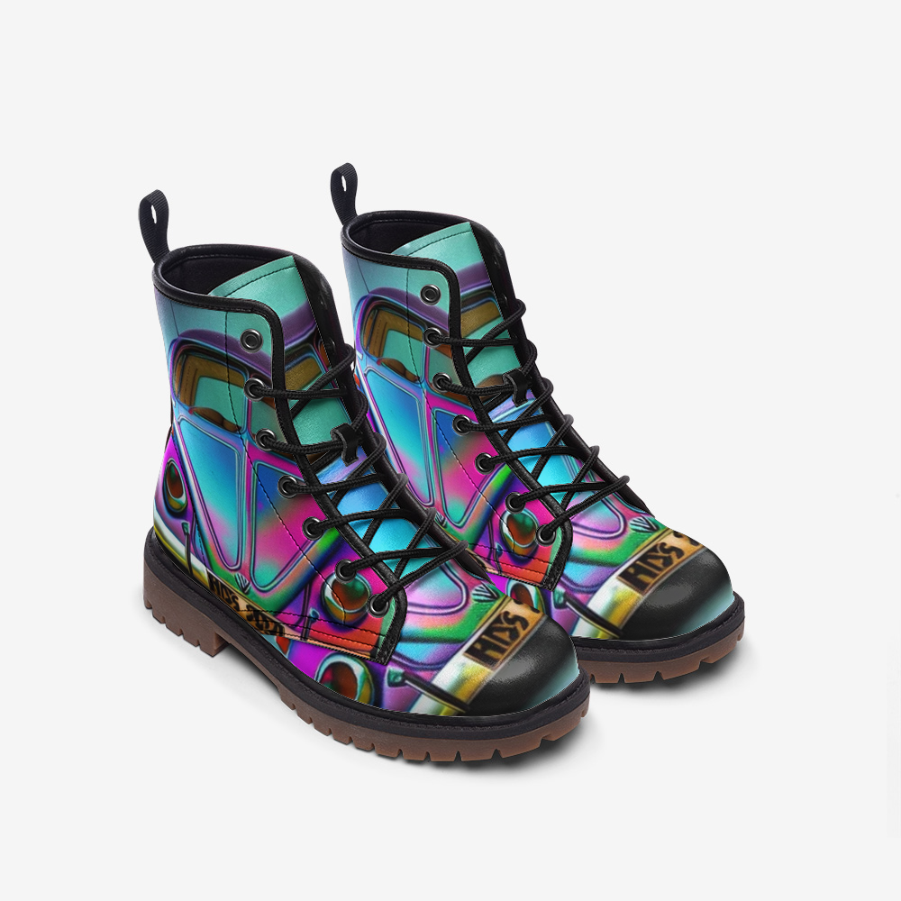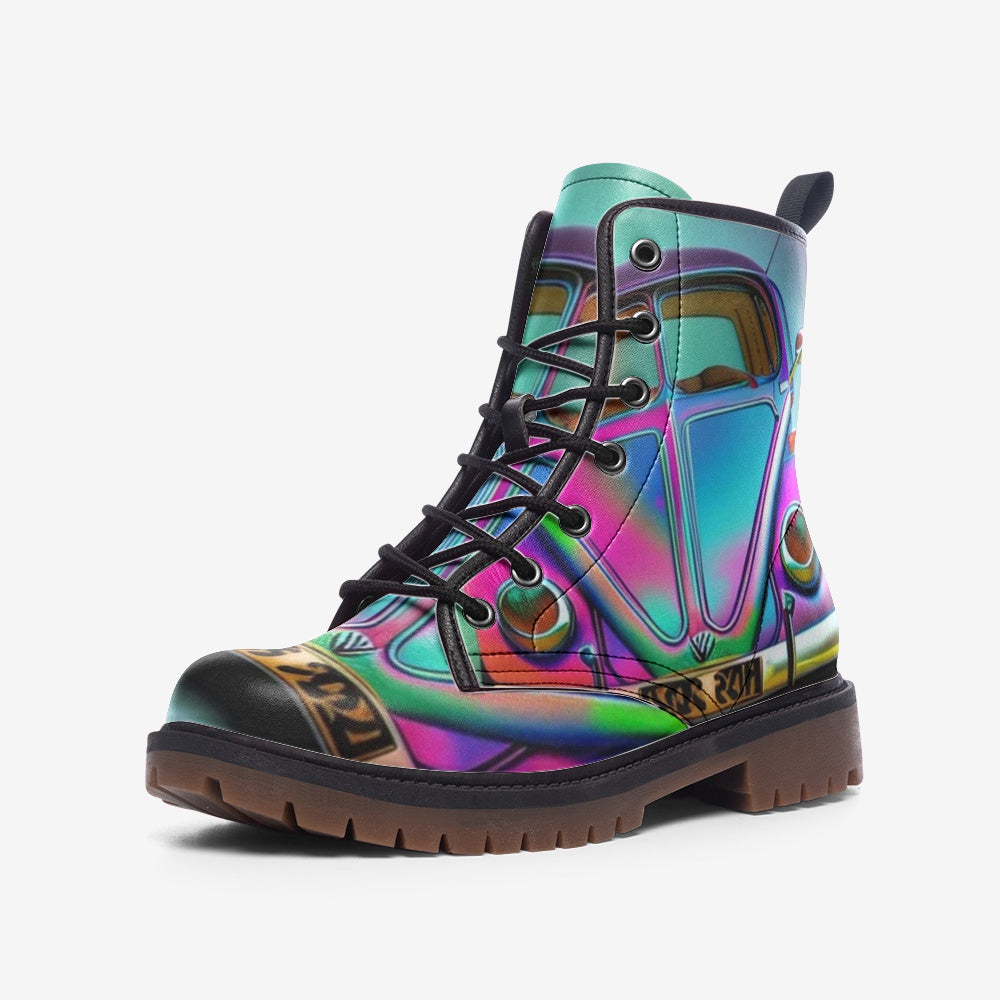 Hippie Art Zone - Holographic Beetle Casual Leather Lightweight Boots For Hippies
