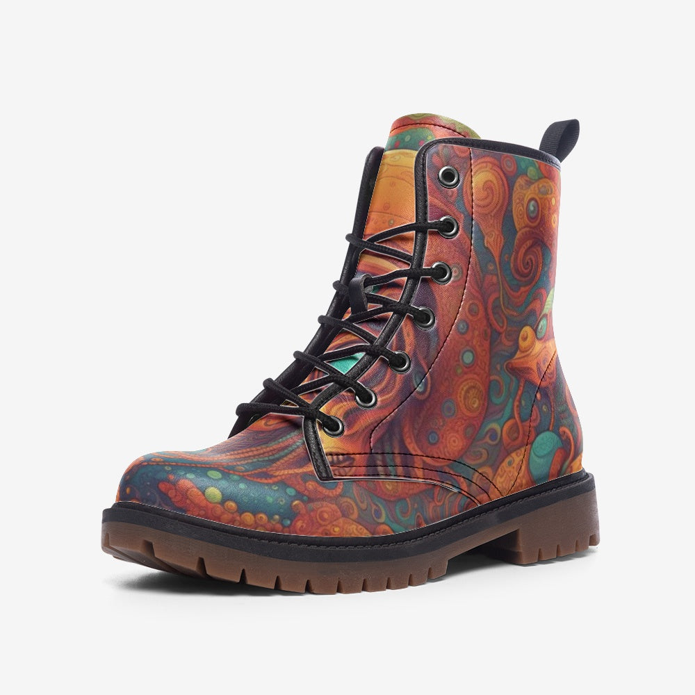 Hippie Art Zone - Imaginary Planet, Peace In Mind Leather Lightweight Boots for Hippies