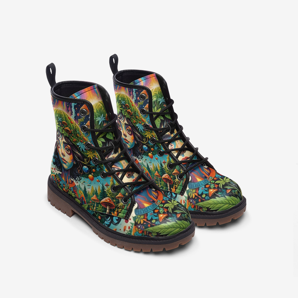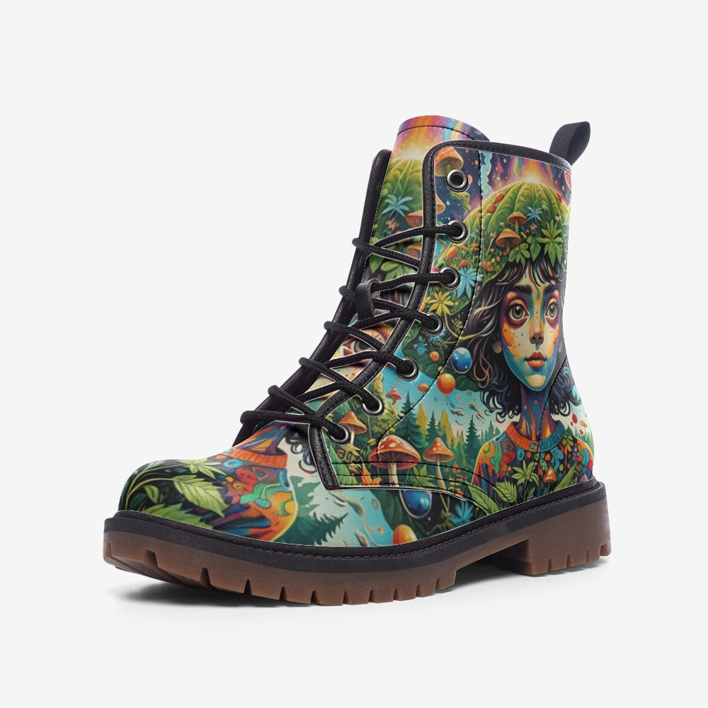 Mother Nature, Mushroom Girl Leather Lightweight Boots for Hippies