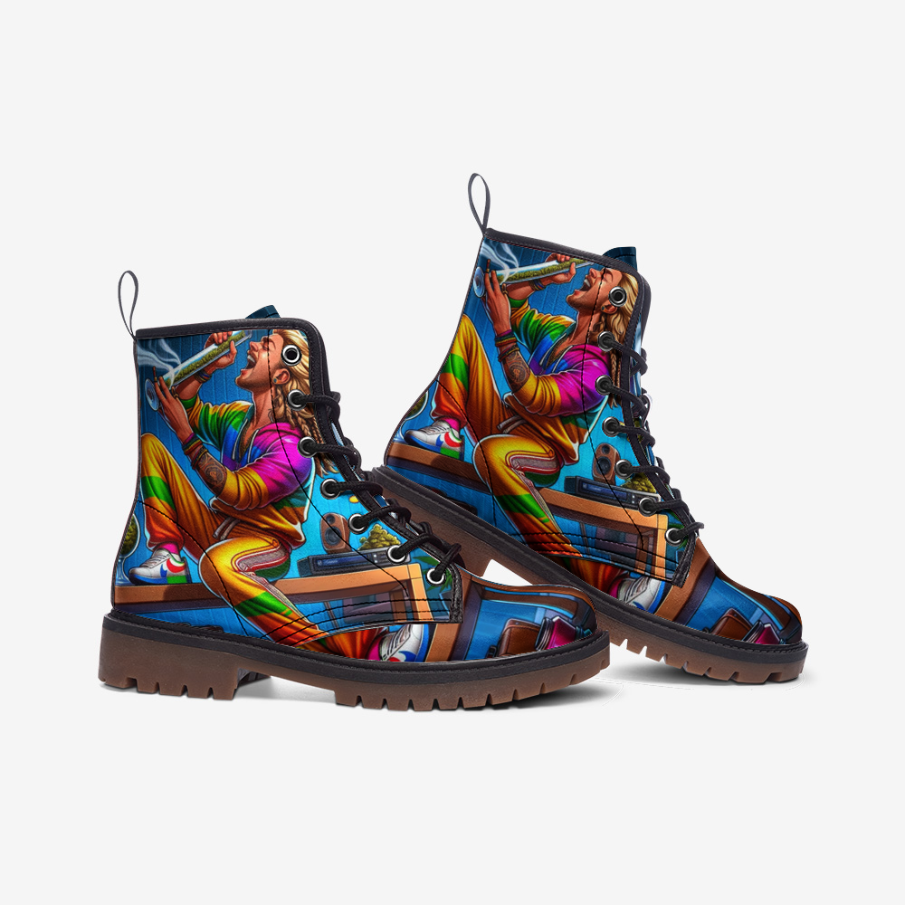 Hippie Art Zone - Music Soul Man Leather Lightweight Boots for Hippies
