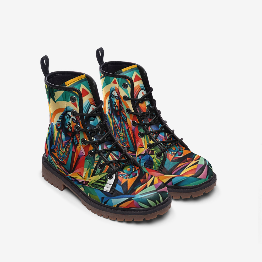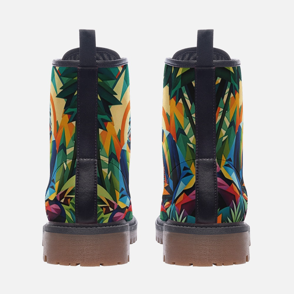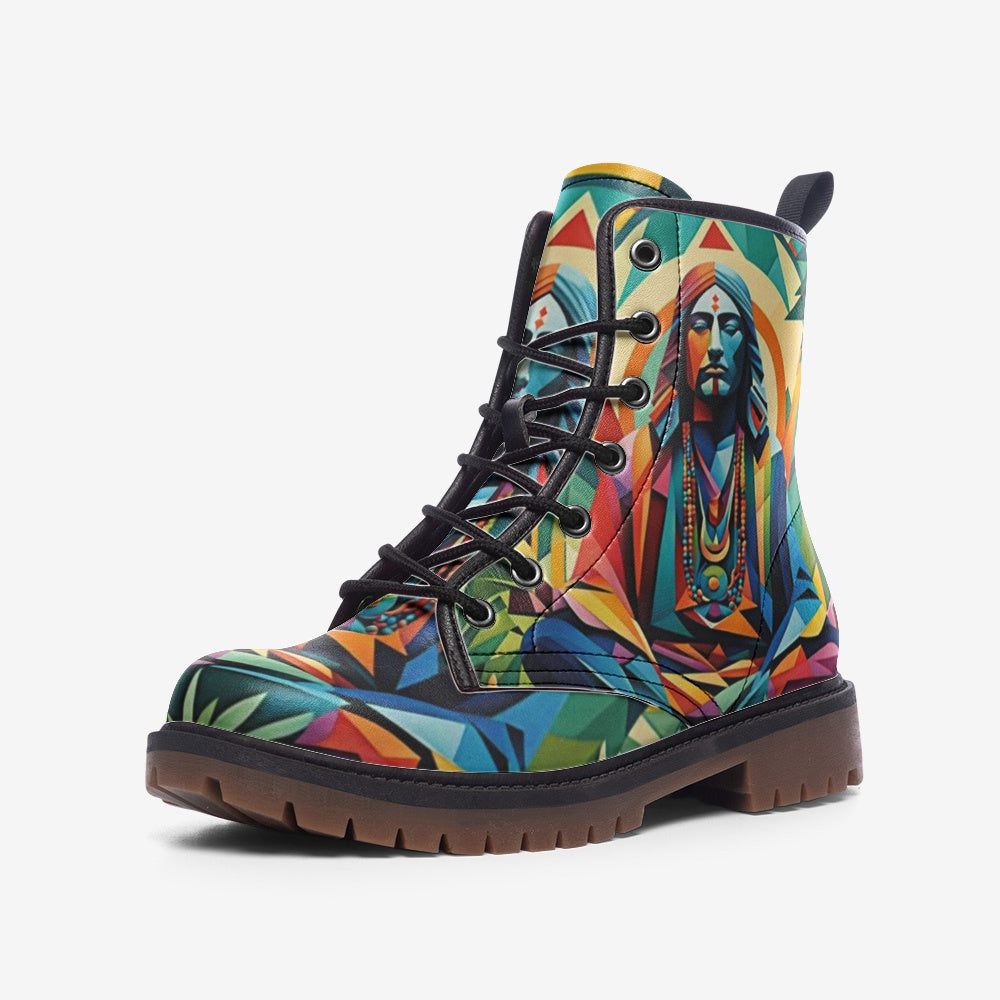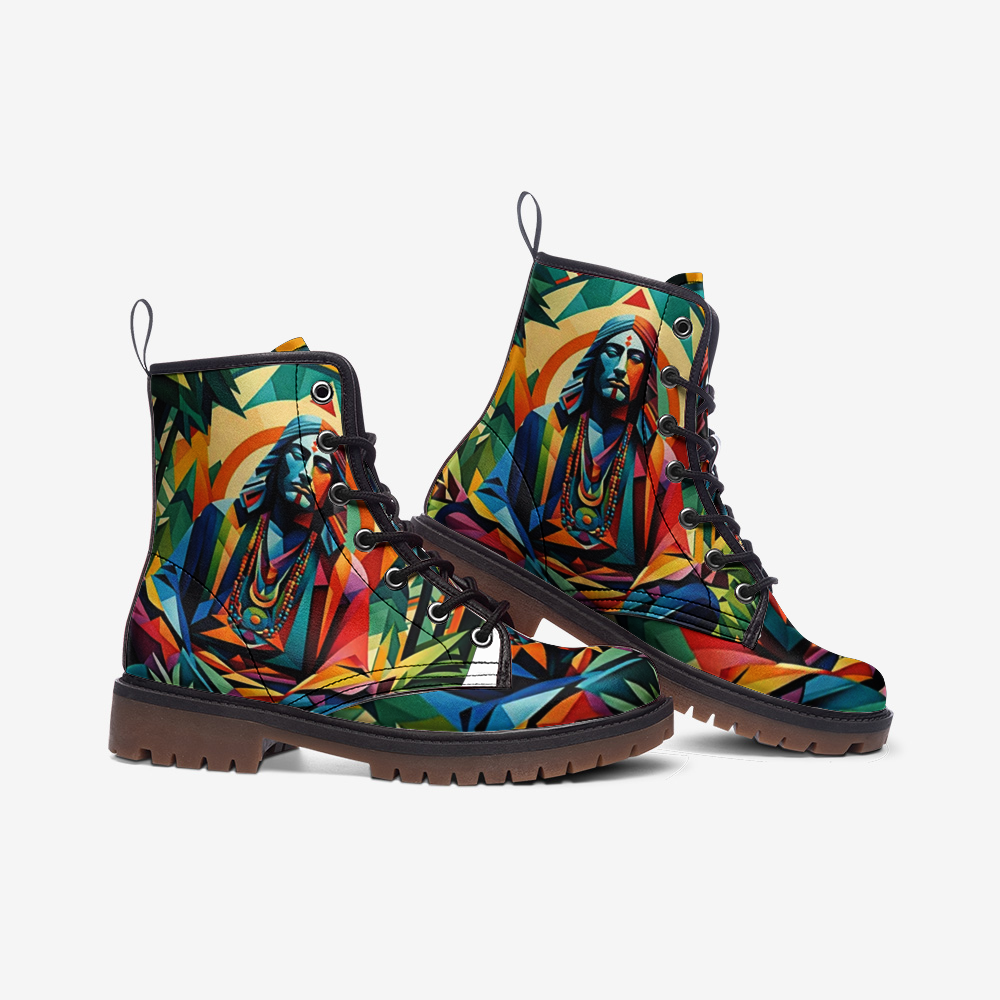 Achieve serenity and style with the Emerald Blossoms - Peaceful Mind Boots. Featuring colorful geometric art inspired by meditation, these casual leather boots combine vibrant design with a sense of calm. Lightweight and crafted for comfort, they are ideal for the hippie seeking balance and inner peace while still making a bold fashion statement. Step into these boots and let your journey be both serene and stylish.