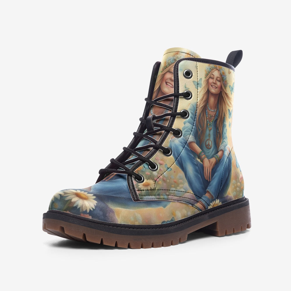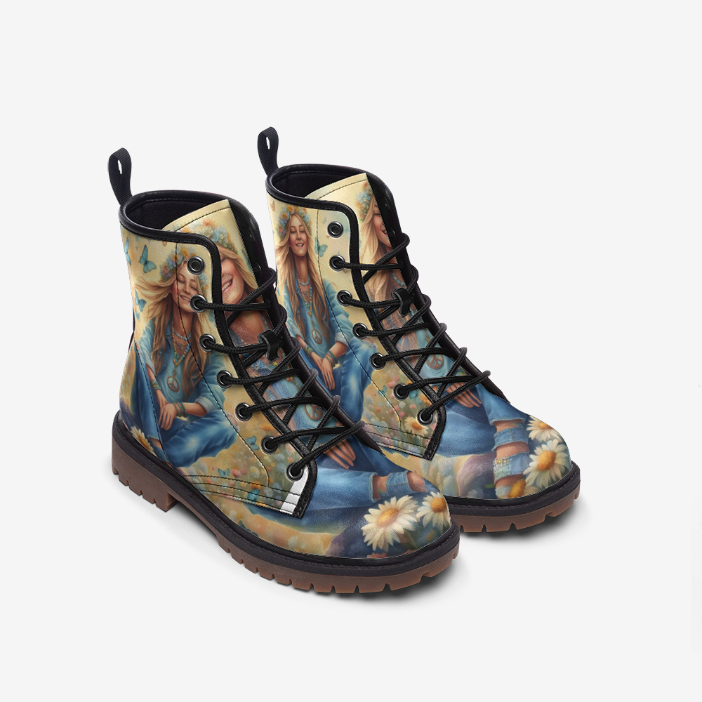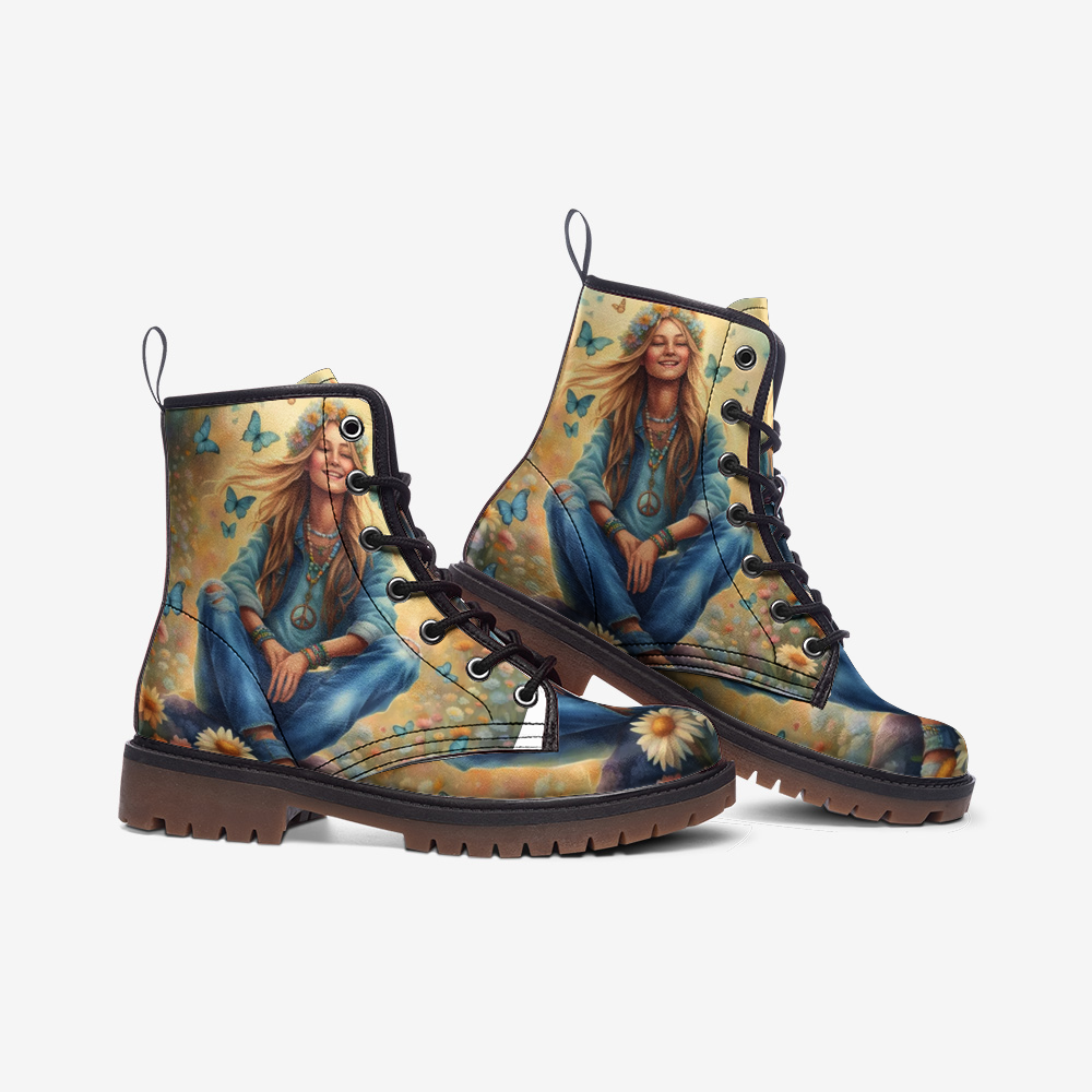 Find serenity and style with the Peaceful Mind, Peaceful Life boots. These casual leather boots feature a calming bohemian design that embodies tranquility and ease. Lightweight and crafted for all-day comfort, they're perfect for the modern hippie who values ??peace and embraces a free-spirited lifestyle. Step into these boots and let your journey be as peaceful and stylish as your soul.