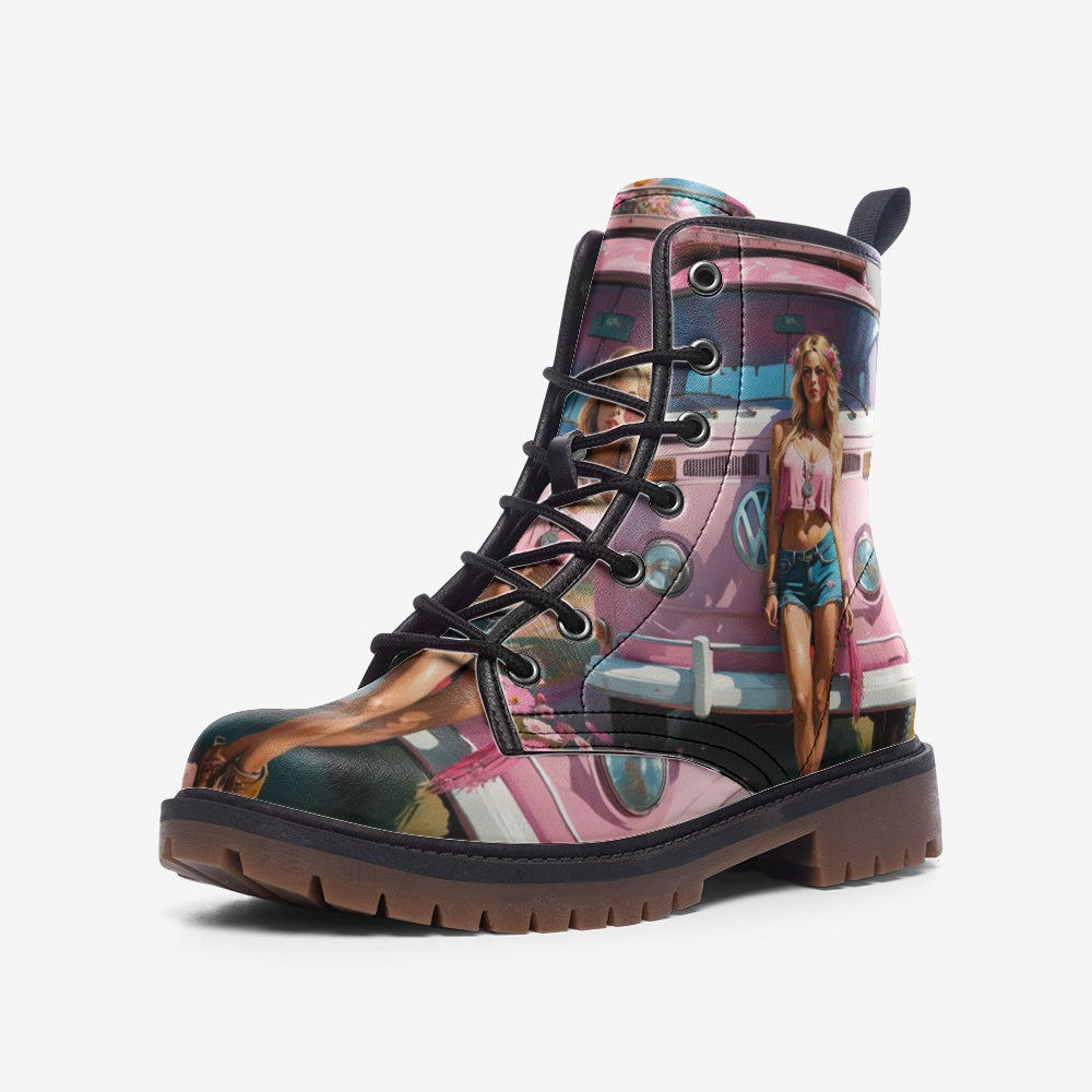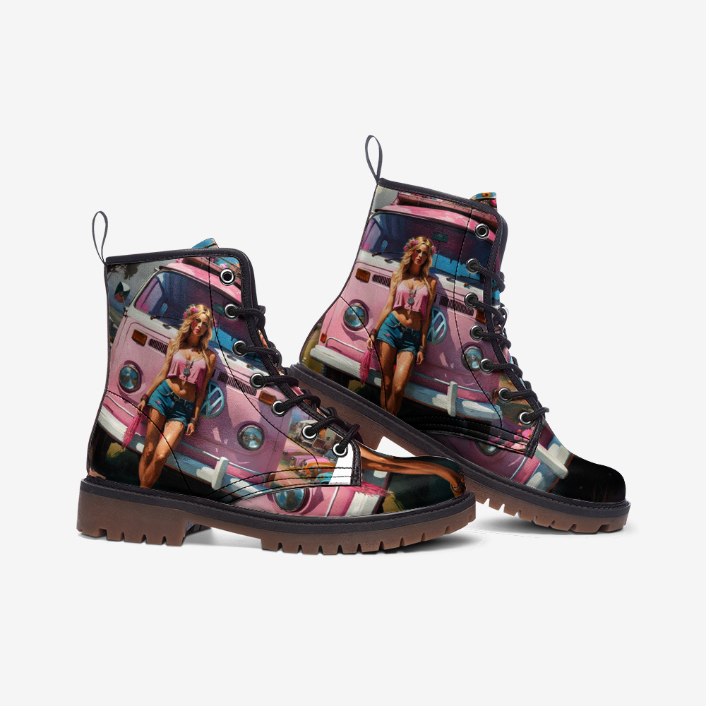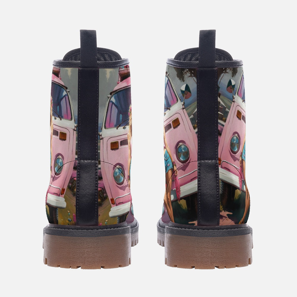 Pink Girl, Summer Trips, Van Life Casual Leather Lightweight Boots For Hippies