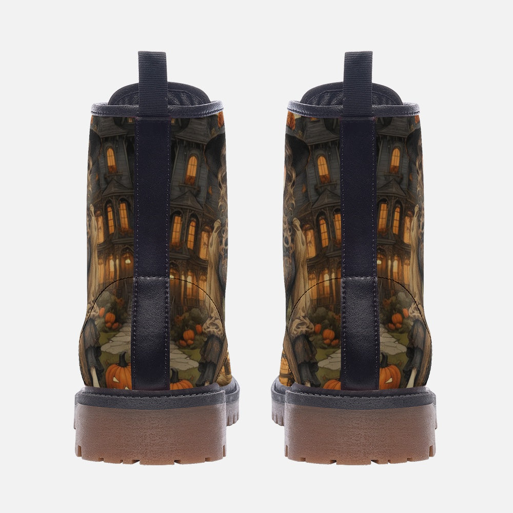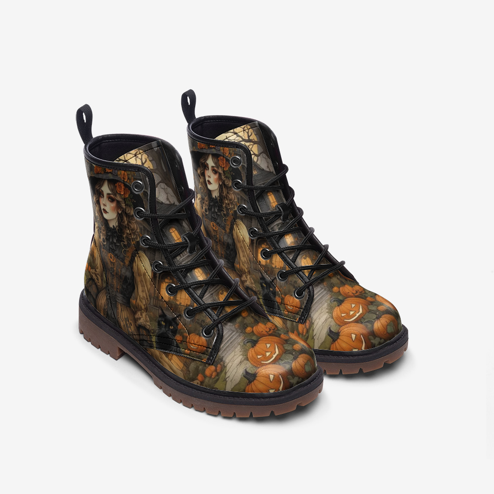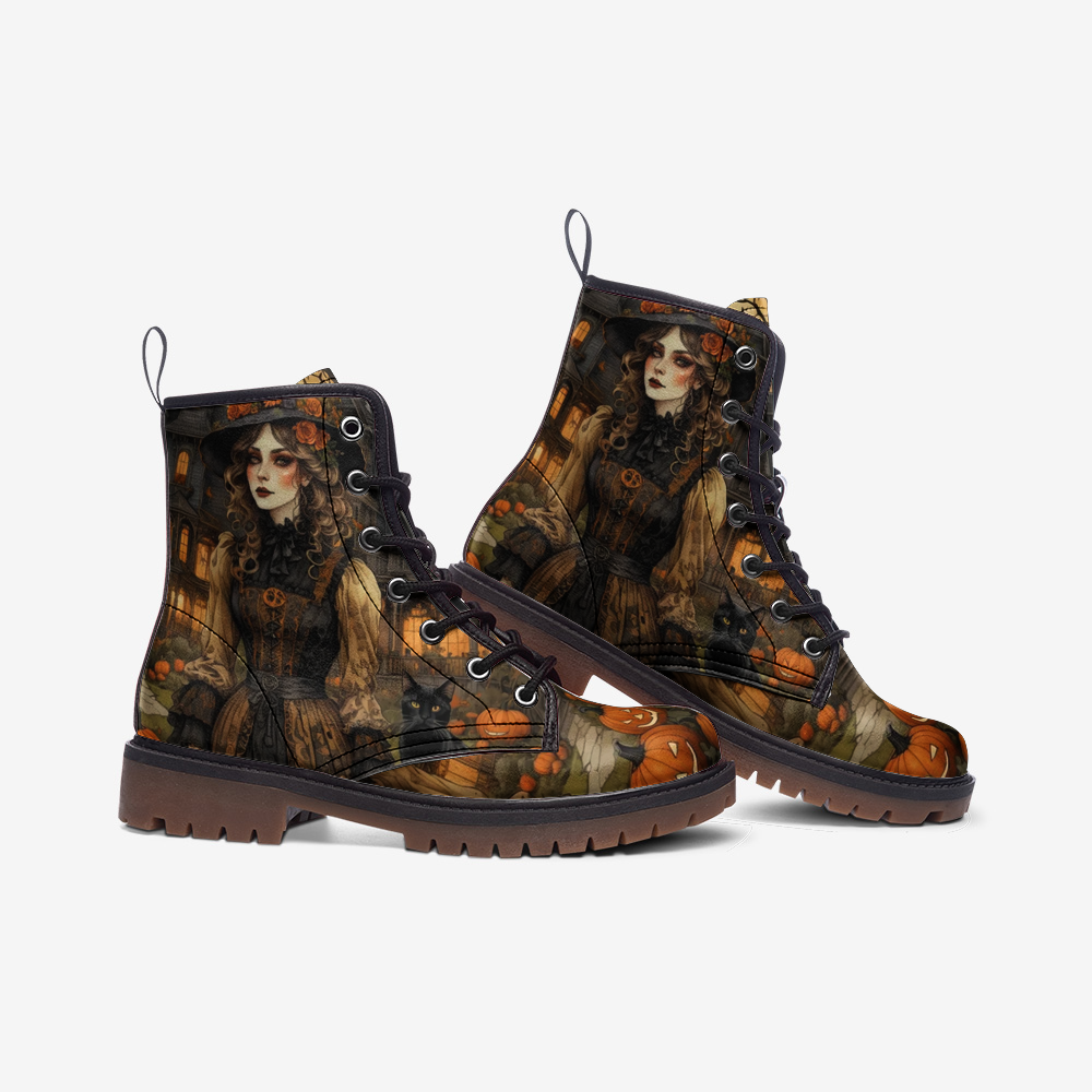 These leather boots feature a fun pumpkin girl design, perfect for Halloween lovers and free spirits. Comfortable and durable, they are great for everyday wear or adding a playful touch to your Halloween costume. Step into the holiday season with style and creativity.