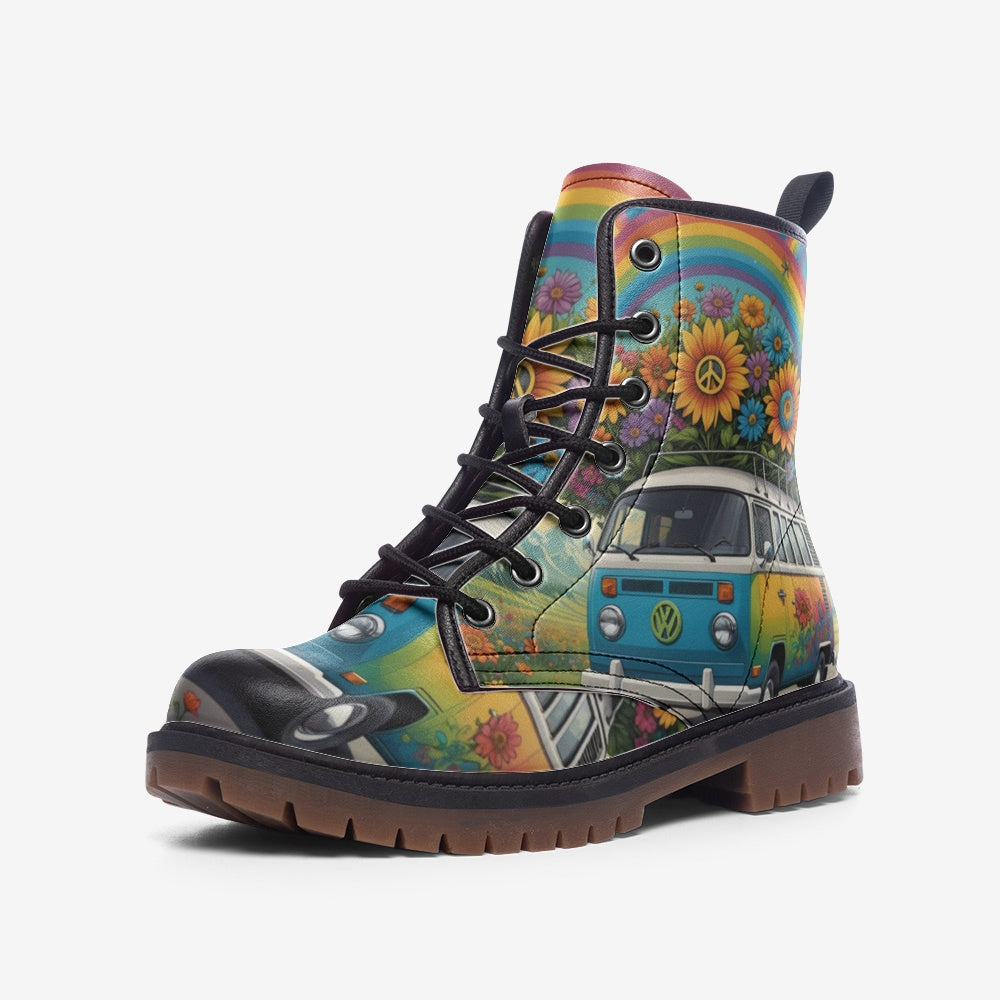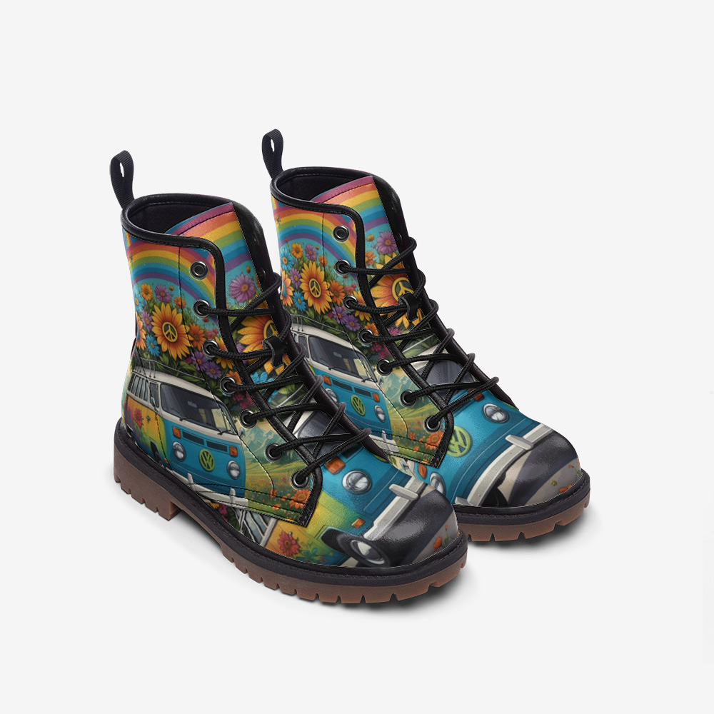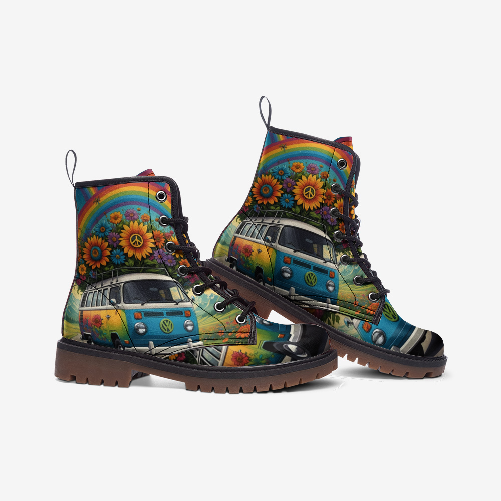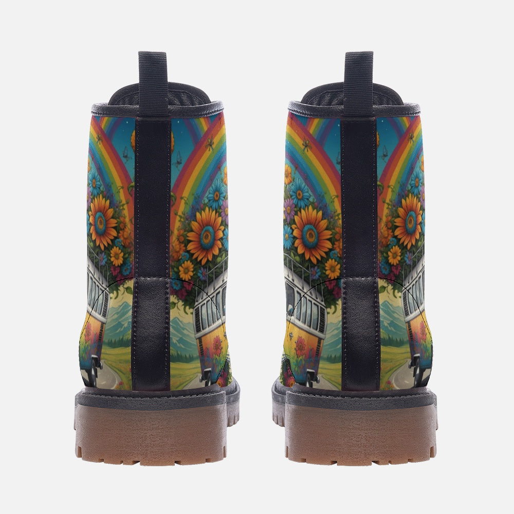 Hippie Art Zone - Rainbow On The Way Casual Leather Lightweight Boots For Hippies