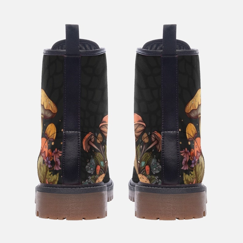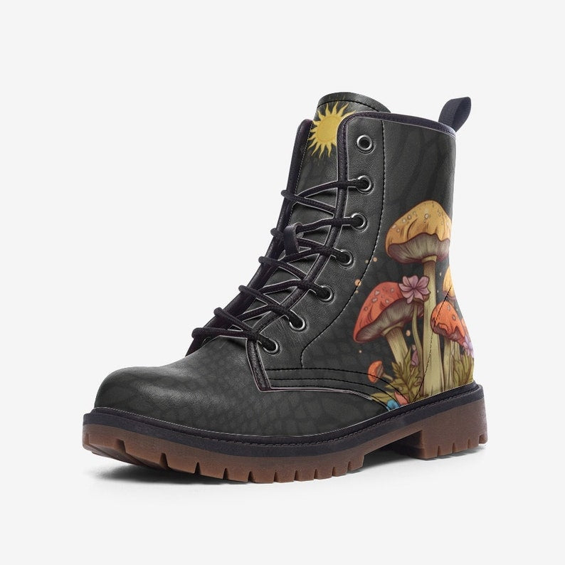Hippie Art Zone - Rave Boots Festival Boots Black Mushroom Vegan Leather Lace Up