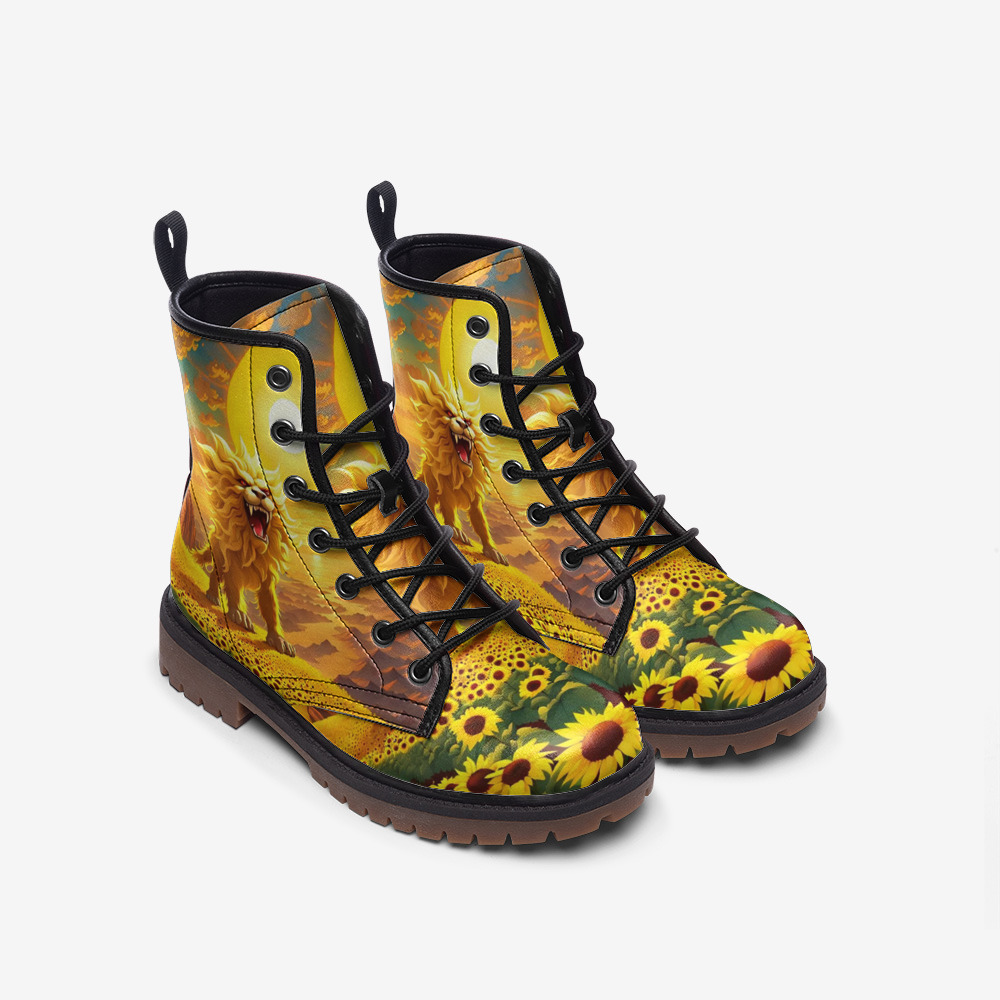 Hippie Art Zone - Roaring Lion on Leather Lightweight Boots for Hippies