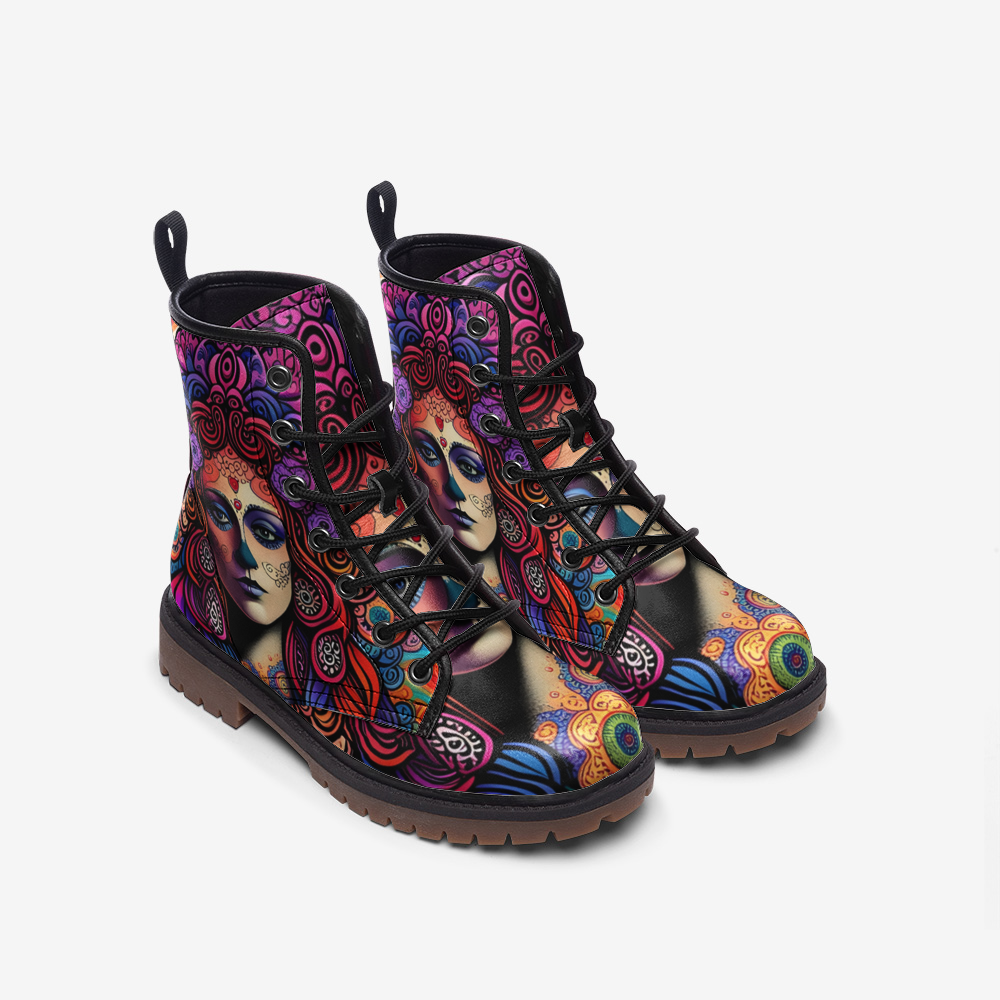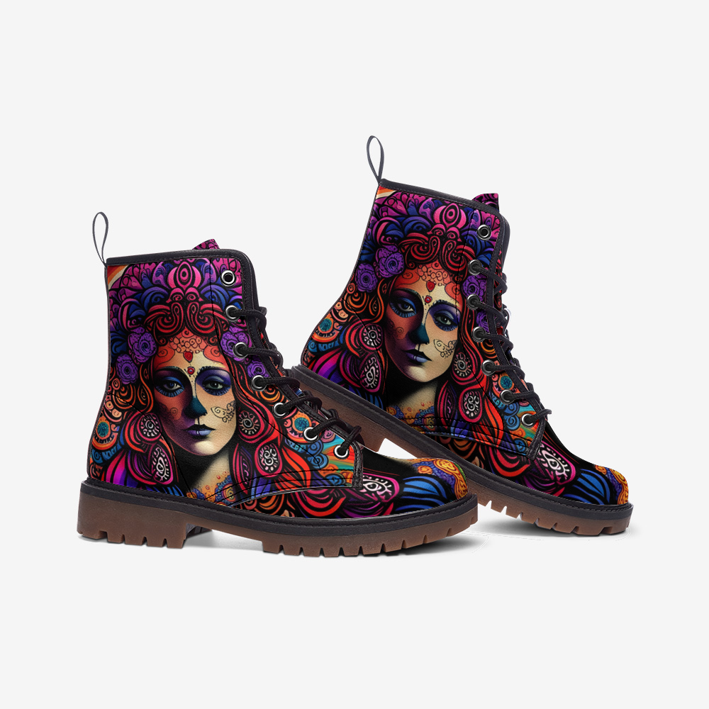 Hippie Art Zone - Santa Maria La Catrina Casual Leather Lightweight Boots For Hippies