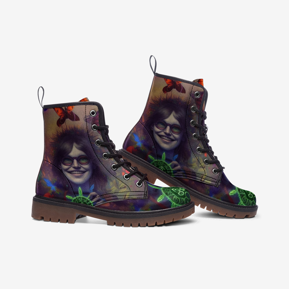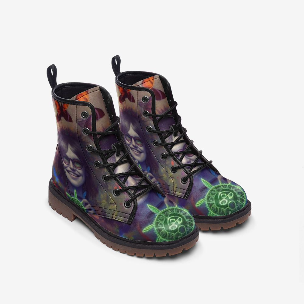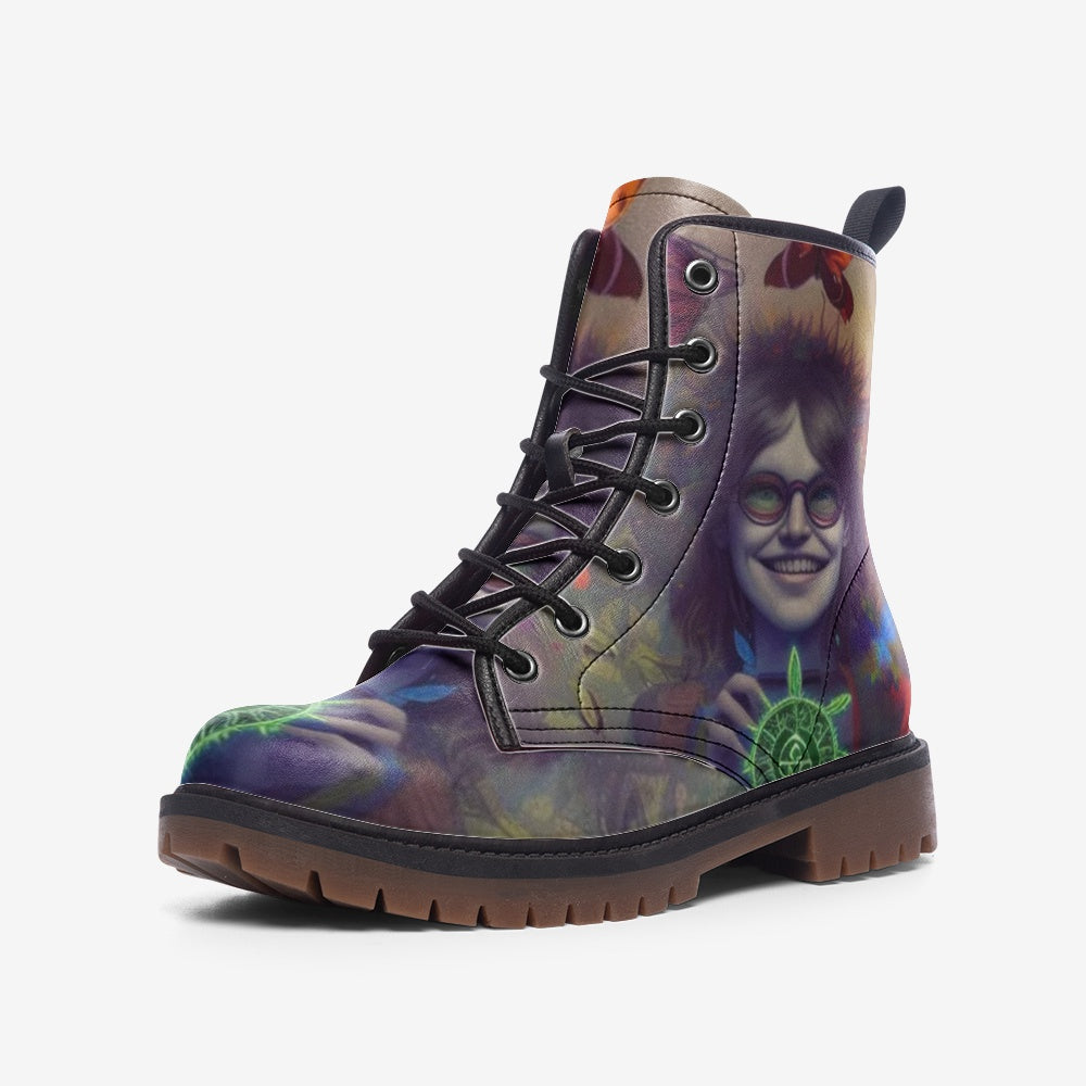 Embrace your inner mystic with the Spiritual Girl With Dreamcatcher lightweight leather boots from Emerald Blossoms. Featuring a captivating design of a serene girl adorned with a dreamcatcher, these boots combine spiritual symbolism with stylish comfort. Crafted from soft, lightweight leather, they fit snugly while remaining expressive. Perfect for those on a spiritual journey and a little bohemian, these boots add a layer of serenity and elegance to any outfit. Step out with purpose and let your dreams guide your path!