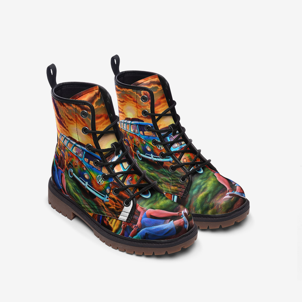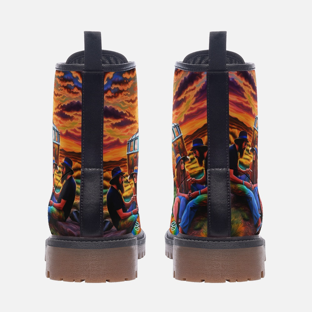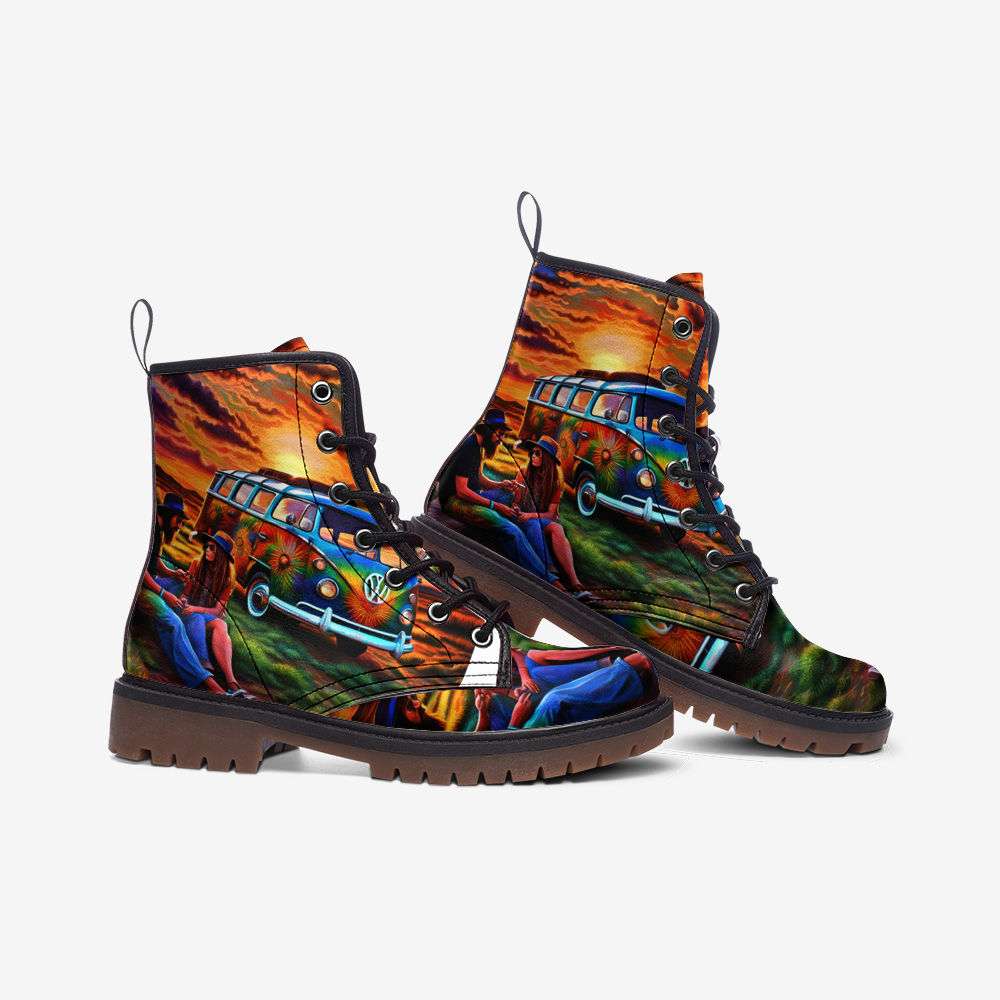 Capture the essence of romance with the Emerald Blossoms - Stunning Sunset View Boots. Featuring a breathtaking sunset design, these casual leather boots are perfect for hippie couples embarking on their dream trips. Lightweight and crafted for comfort, they are ideal for those who cherish romantic moments and scenic adventures. Step into these boots and make every journey as beautiful and unforgettable as the sunset itself.