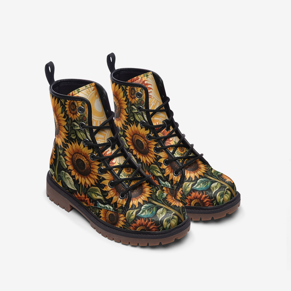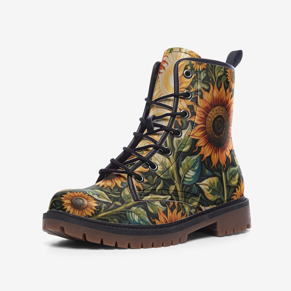 Sunflower Forest on Leather Lightweight Boots for Hippies