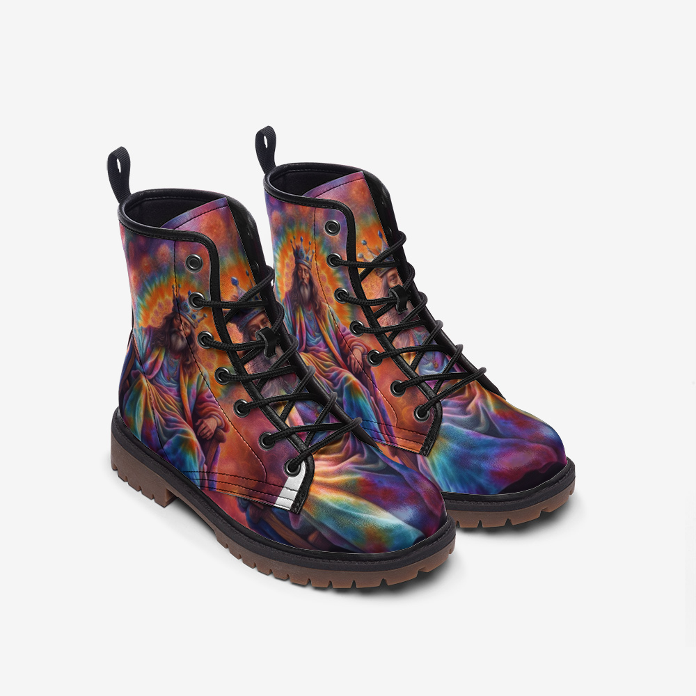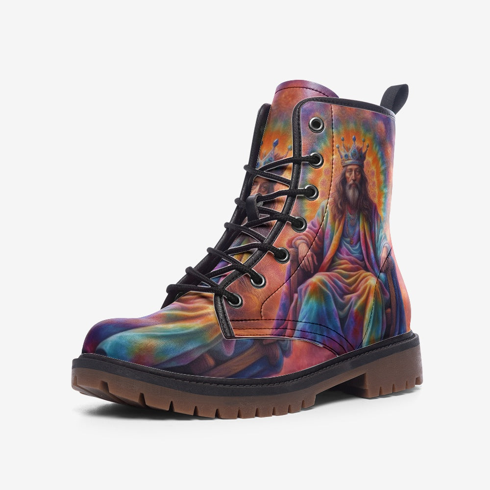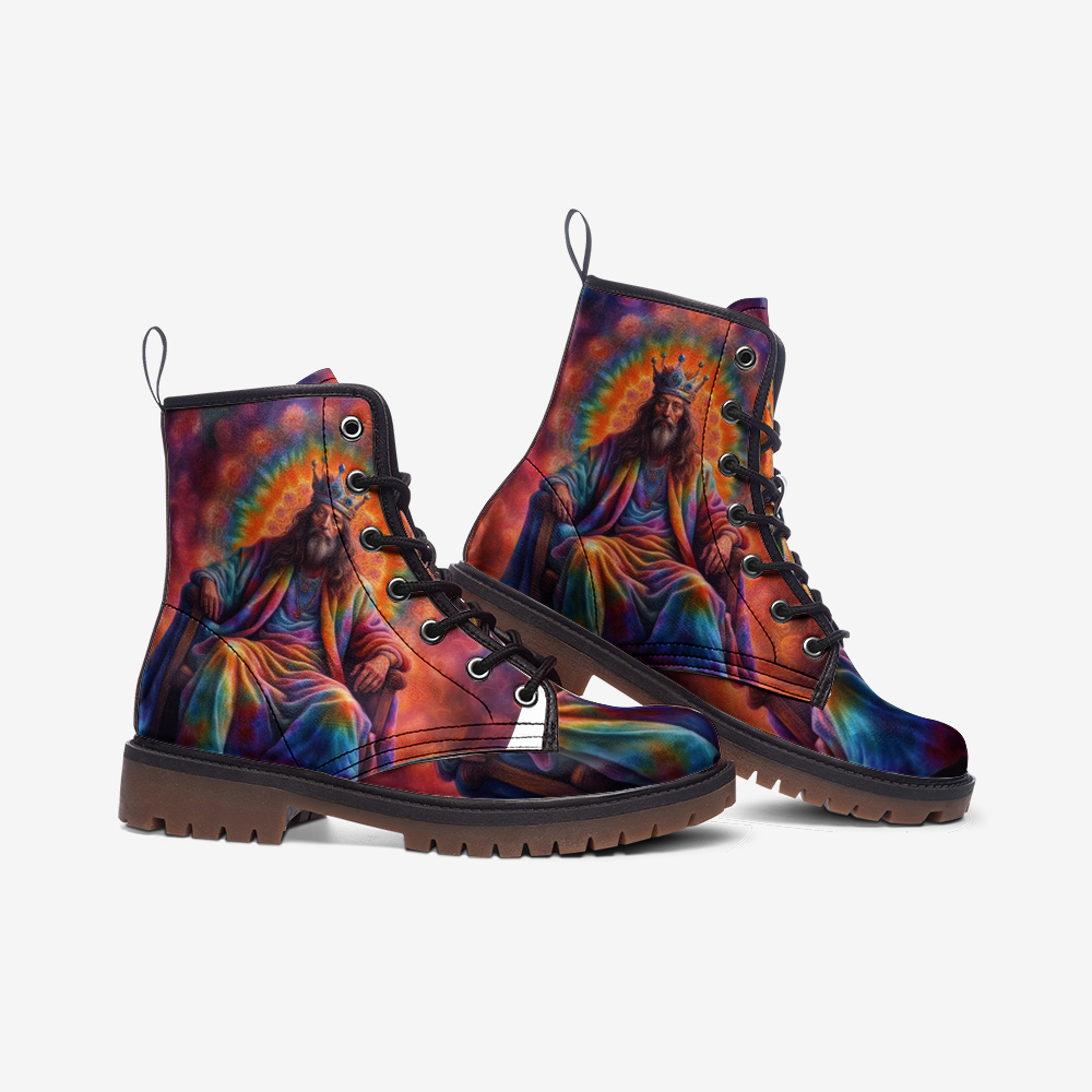 Hippie Art Zone - The King Of Throne, Tie Dye Costume Casual Leather Lightweight Boots For Hippies