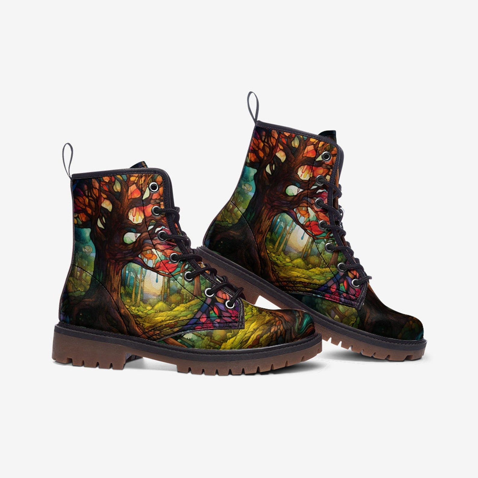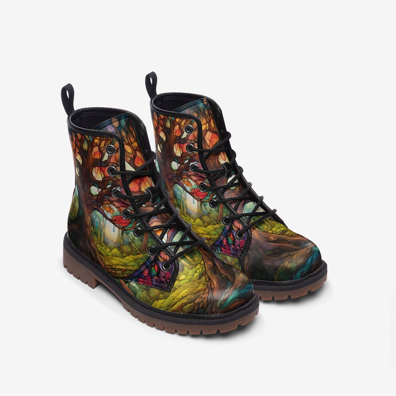 Hippie Art Zone - Tree of Life Casual Leather Lightweight Boots | Unique Boots For Hippies