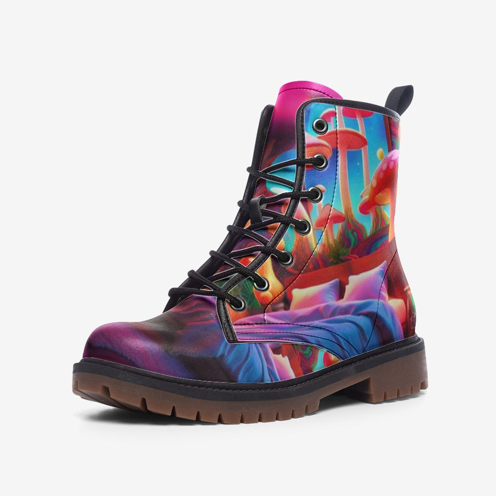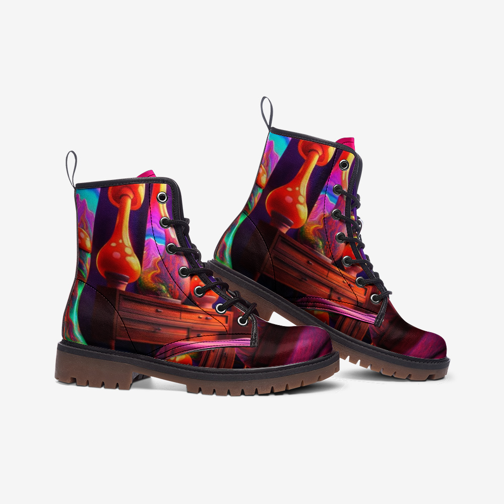 Hippie Art Zone - Trippy Mushroom Decoration Casual Leather Lightweight Boots For Hippies