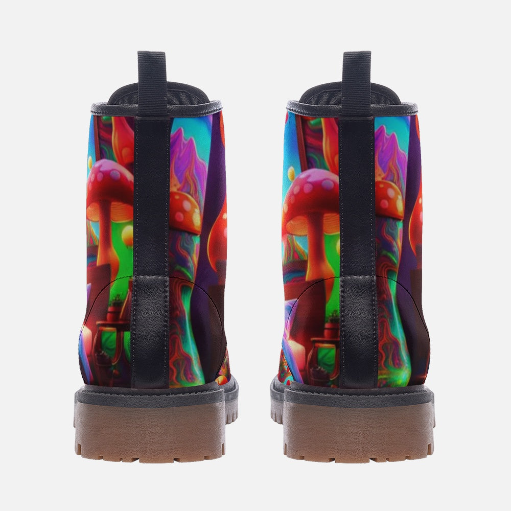 Trippy Mushroom Decoration Casual Leather Lightweight Boots For Hippies
