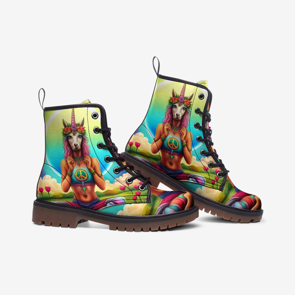 Unicorn Girl on Leather Lightweight Boots for Hippies