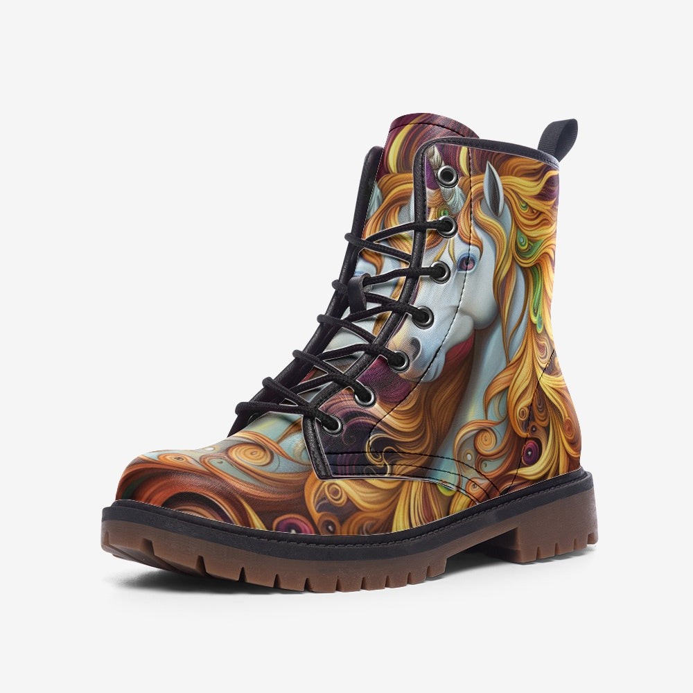 Hippie Art Zone - Unicorn Portrait Casual Leather Lightweight Boots For Hippies