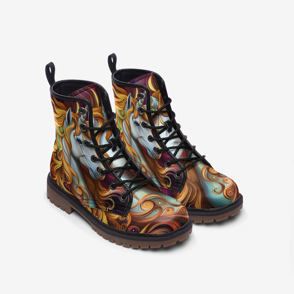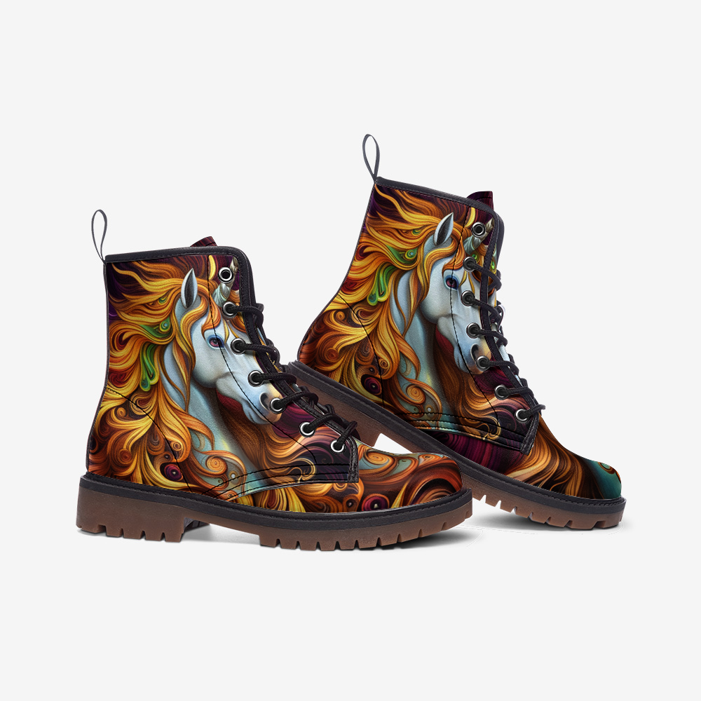 Unleash your magical side with the Unicorn Portrait Casual Leather Boots from Emerald Blossoms! Featuring a stunning, detailed unicorn design, these boots are the perfect blend of whimsical artistry and everyday comfort. Crafted from soft, high-quality leather, they offer a lightweight, flexible fit that will keep you comfortable from sunrise to sunset. Ideal for dreamers and adventurers alike, these boots add a touch of fantasy to any outfit. Walk in wonder and let your style shine with every step!