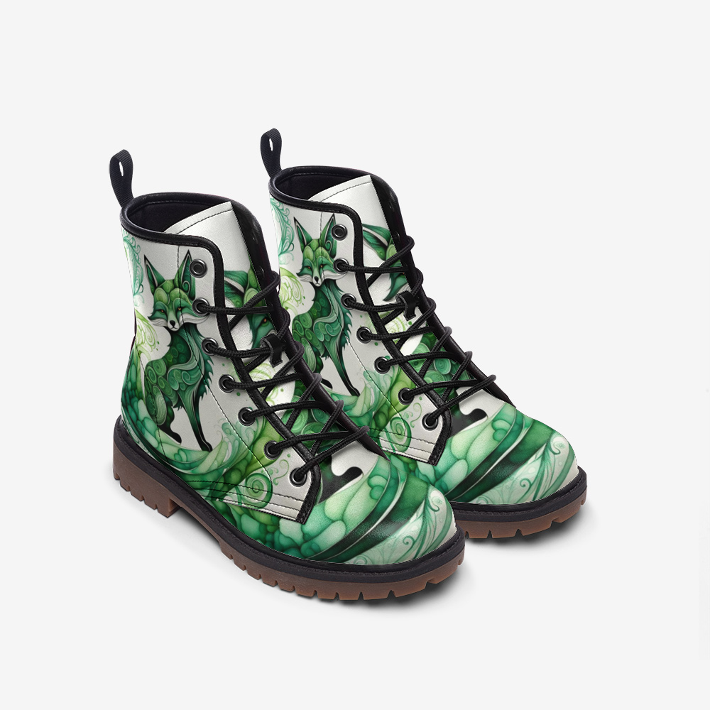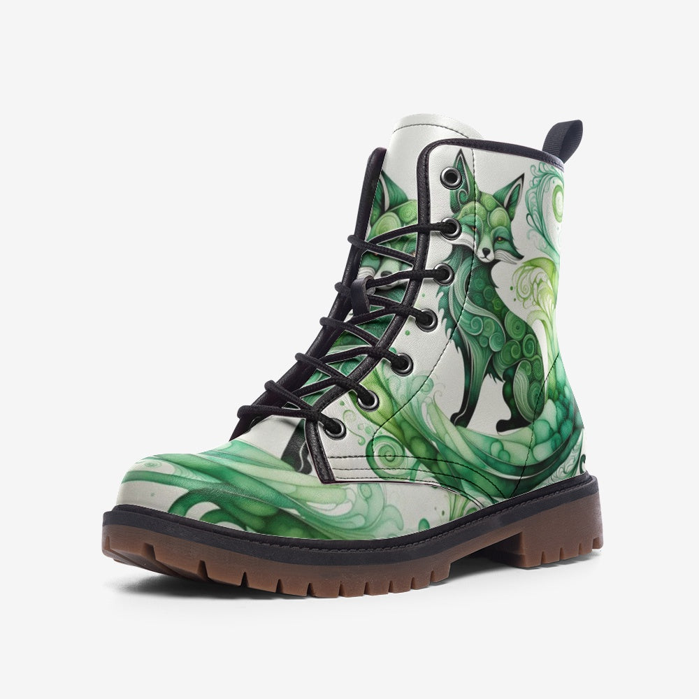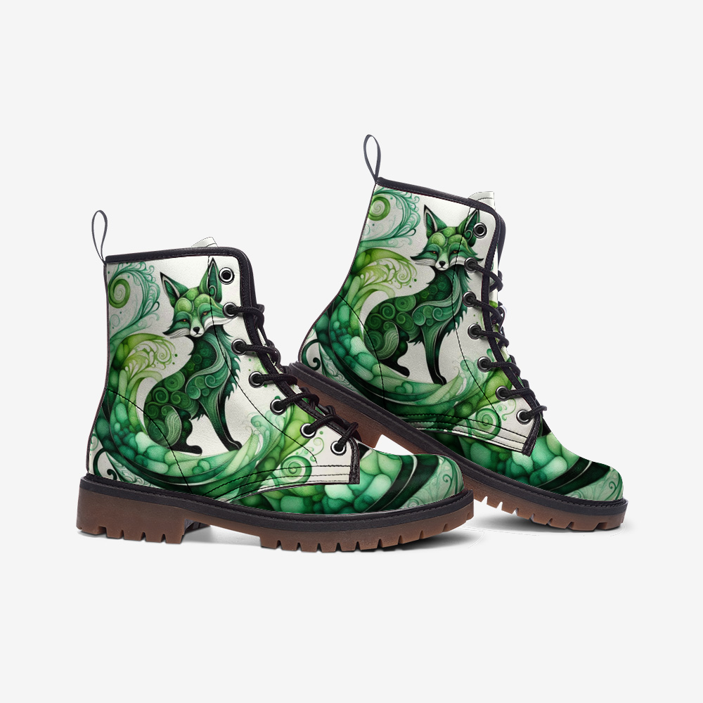 Hippie Art Zone - Vibrant Green Fox Casual Leather Lightweight Boots For Hippies