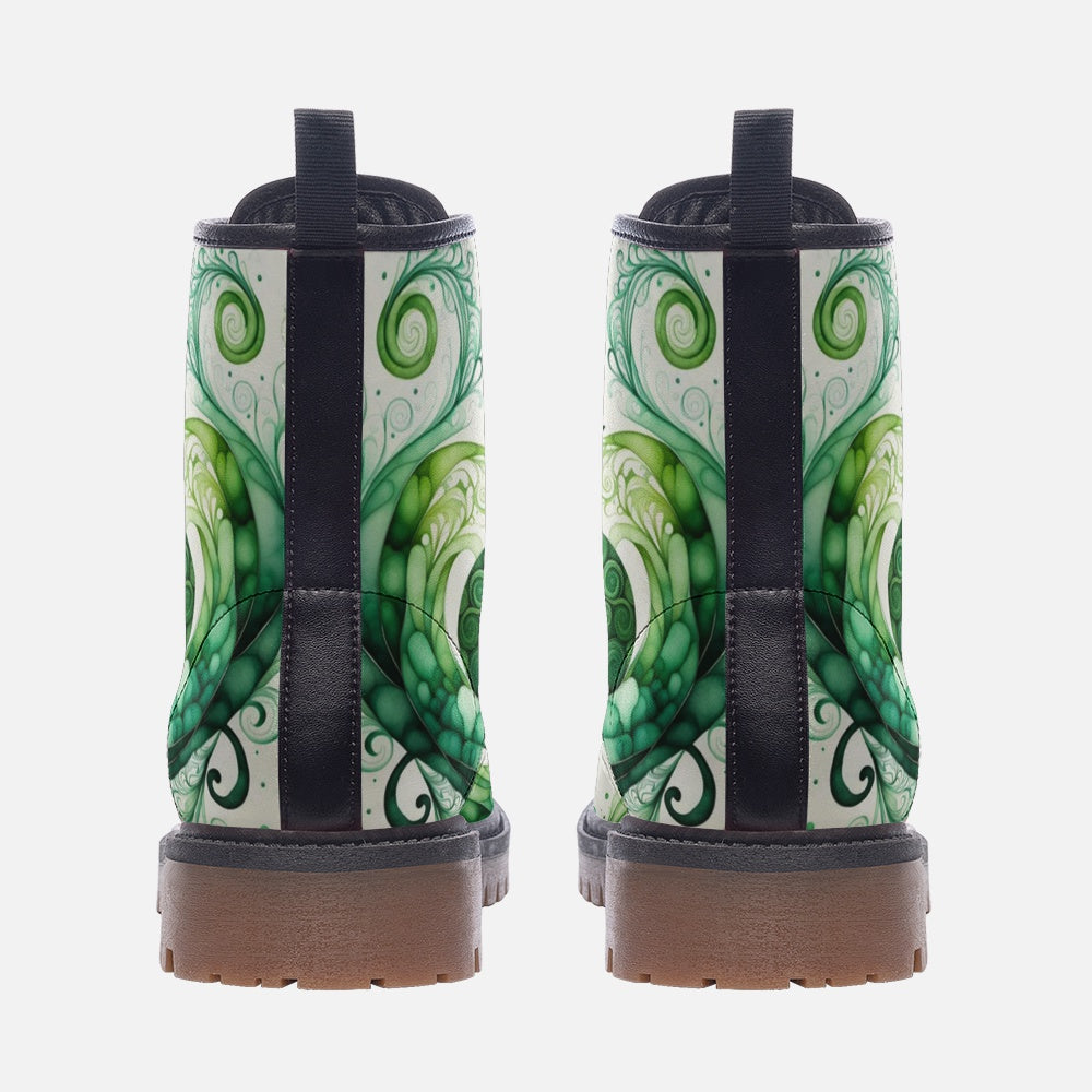 Show off dazzling sophistication with Emerald Blossoms Green Casual Lightweight Boots. These boots feature a striking design inspired by the cunning and charm of foxes, expressed in a vibrant green color palette. Perfect for those looking for unique and stylish footwear that combines artistic flair with comfort and durability.