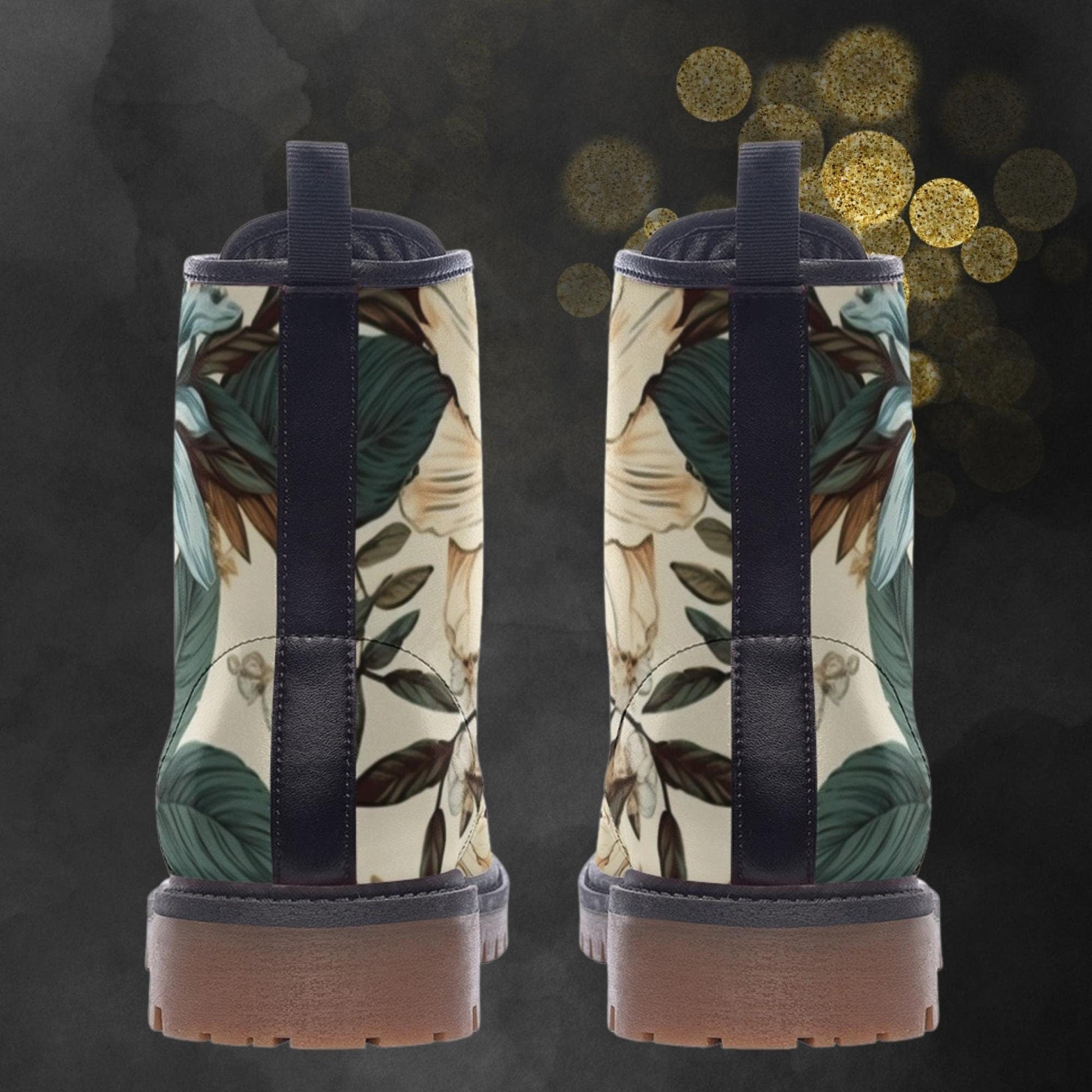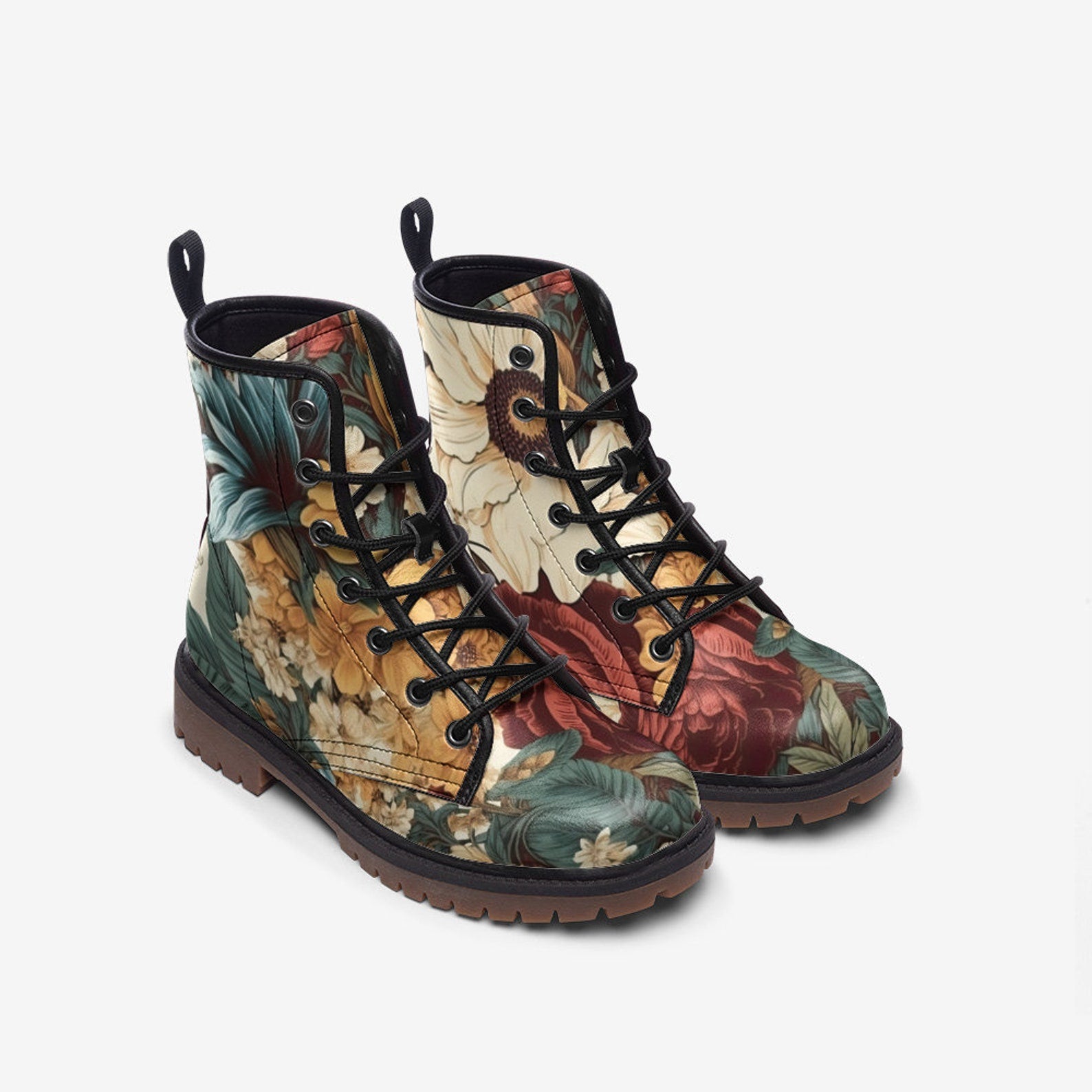 Discover timeless charm with our Vintage Flowers Vegan Leather Combat Boots. Featuring a beautiful floral design, these eco-friendly boots combine classic aesthetics with modern sustainability. Crafted from high-quality vegan leather, they are durable and comfortable, making them perfect for every season. Elevate your style with classic elegance and conscious fashion.