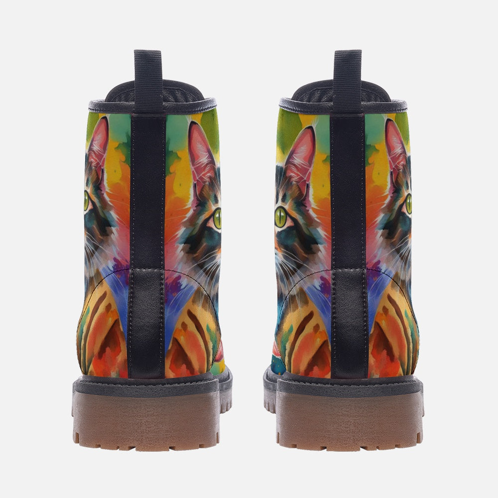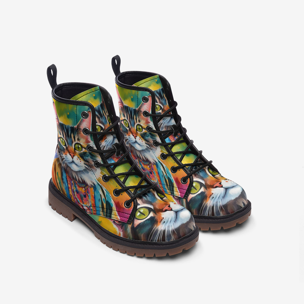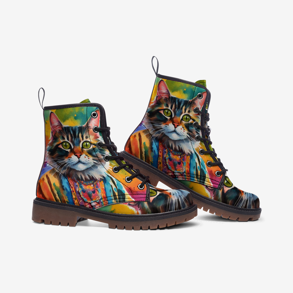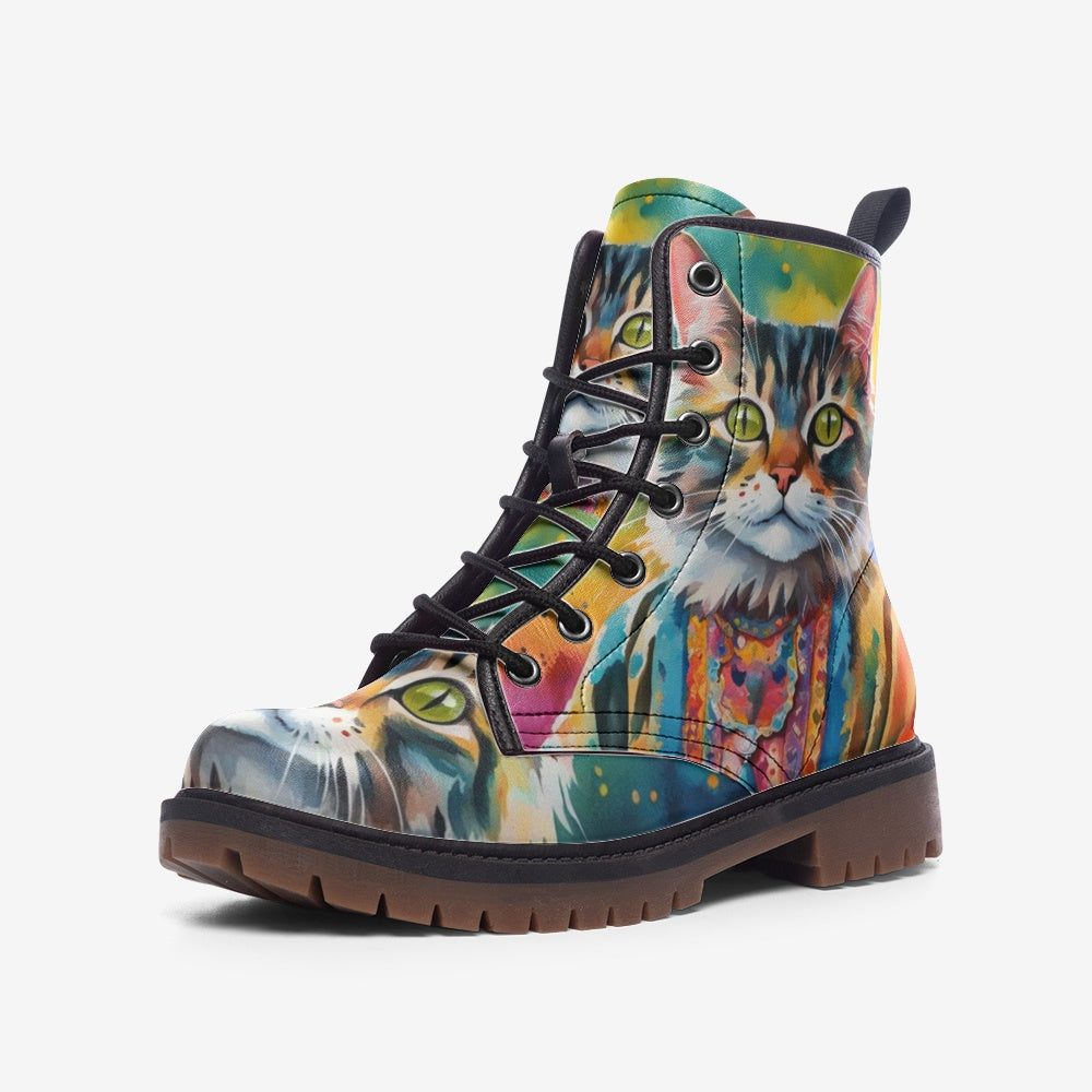 Hippie Art Zone - Watercolor Cat Art on Leather Lightweight Boots for Hippies