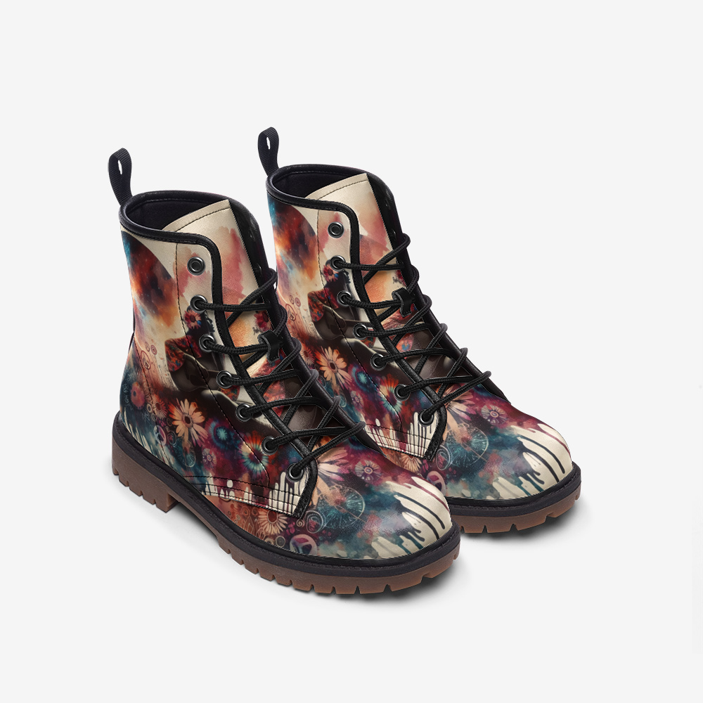 Hippie Art Zone - Watercolor Flower Field Art Casual Leather Lightweight Boots for Hippies